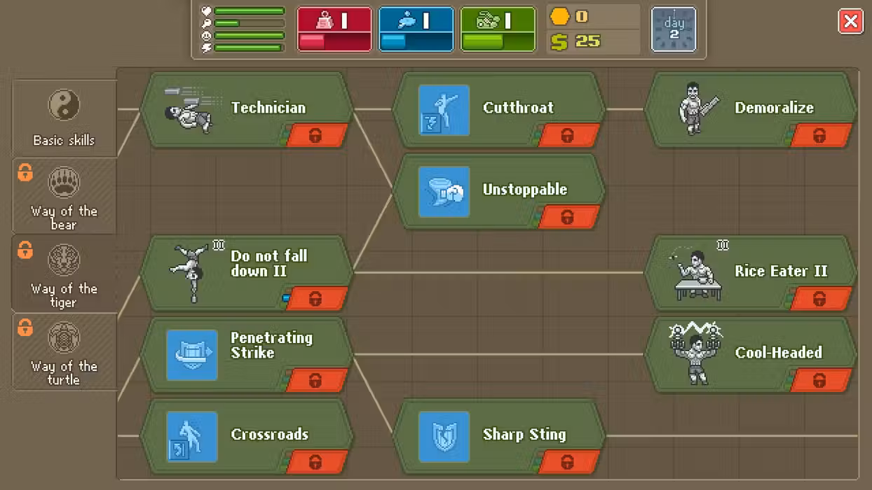 Along the way you'll want to focus your talents. Will you take the Way of the Tiger, the Way of the Turtle, or the Way of the Bear? Your strength, accuracy and agility all depends on whichever Way enlightens your path. Do you have stripes, or flippers?