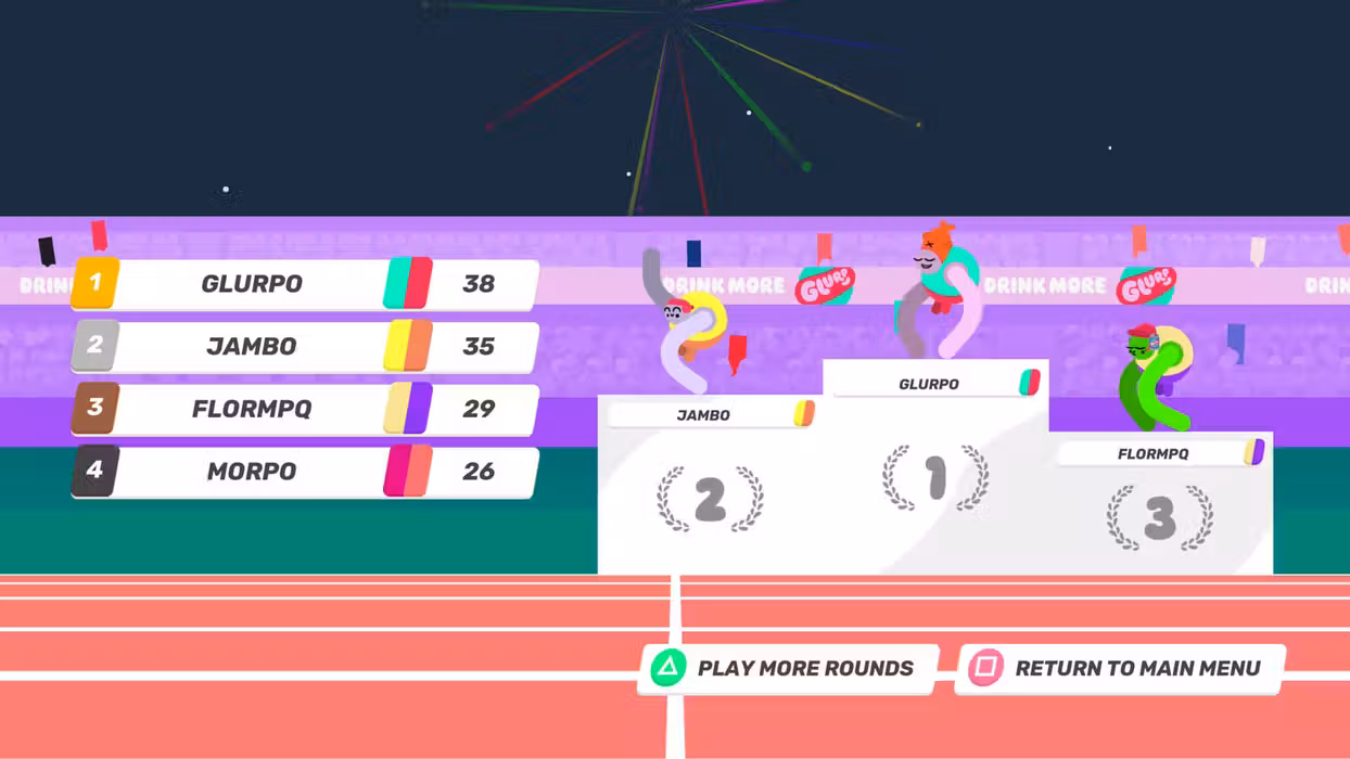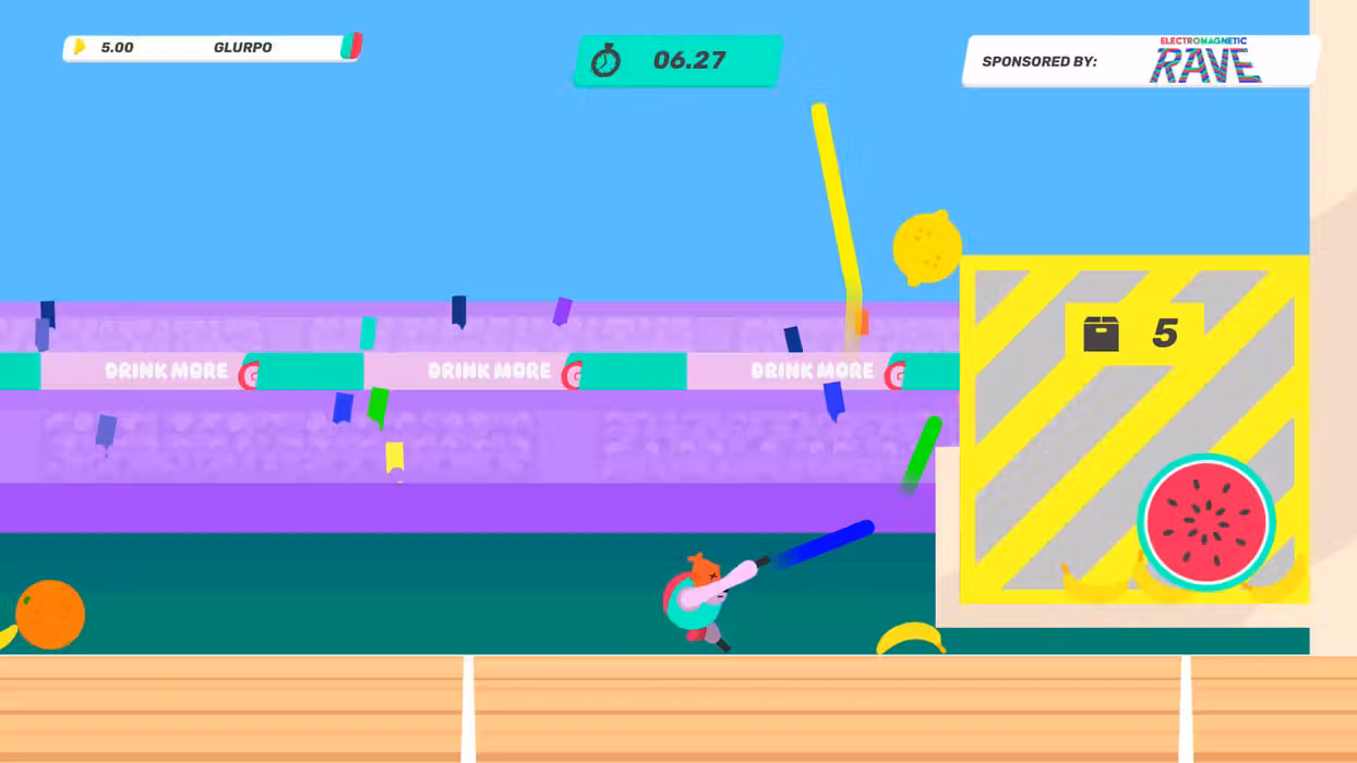 Party game madness sponsored by Glurp Drink More Glurp is a wacky physics, sports(ish), hot seat, party game set on a distant world where aliens have copied Earth’s summer games and got everything slightly wrong. Having binge watched broadcasts of Earth TV the aliens are convinced that advertising is the most important part of any sporting event. Sponsors will randomly take control of events and twist them to fit their agenda, leading to a chaotic galactic summer games like no other. Play together with friends Run, jump, throw and compete in crazy contests with up to 20 local players in Party Mode or take on the single player Challenge Mode and climb the global leaderboards in a variety of challenges. Watch replays of your friends flailing about or study the top scores to hone your own athletic technique. Loaded with content! With an almost endless number of event and sponsor combinations, Glurp has masses of replayability. Just when you think you are getting the hang of an event, you get laser hands! Watch me flail! Glurp makes for a great spectator game – expect lots of shouting and cheering! Designed to keep the action going with drop in / drop out and defer turn features. One controller is all you need. Move with style Each arm of the athlete is controlled independently with the controller’s sticks. You can move and grab with each arm... and that’s it. Get competitive with your own playstyles and unique techniques. Features: Local multiplayer Party Mode from 2-20 Players Thousands of possible event and sponsor combinations A new competition each time you play Single player Challenge Mode with online leaderboards and replays Silly physics Now with MORE Glurp