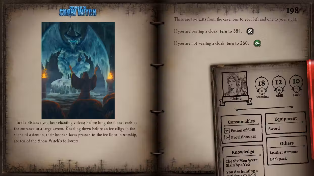 This content requires the base game Fighting Fantasy Classics on Steam in order to play. Deep within the Crystal Caves of the Icefinger Mountains, the dreaded Snow Witch is plotting to bring on a new ice age. A brave trapper dies in your arms and lays the burden of his mission on your shoulders But time is running out – will YOU take up the challenge? Relive Fighting Fantasy – the beloved text-based, interactive adventures of the 80s and 90s! Push your Skill, Stamina and Luck to the limits as you explore the depths of the Crystal Caves. This gamebook has been converted to digital format using Tin Man Games' acclaimed Gamebook Adventures engine. FEATURES • Make the gamebooks as easy or hard as you like and even turn on a special 'Free Read' mode to play the book like an old-school cheater! • Map feature makes it easy to keep track of everywhere you have explored during current and previous playthroughs. • Unlimited Bookmarks allow you to revisit difficult sections as many times as desired. • Classic, original artwork from Gary Ward & Edward Crosby, all viewable through a collectable artwork gallery. • Automated Adventure Sheet that keeps track of your stats, inventory and knowledge gained during your journey. • Specially composed, atmospheric soundtrack and effects. Caverns of the Snow Witch is digital gamebook DLC intended for use with Fighting Fantasy Classics.