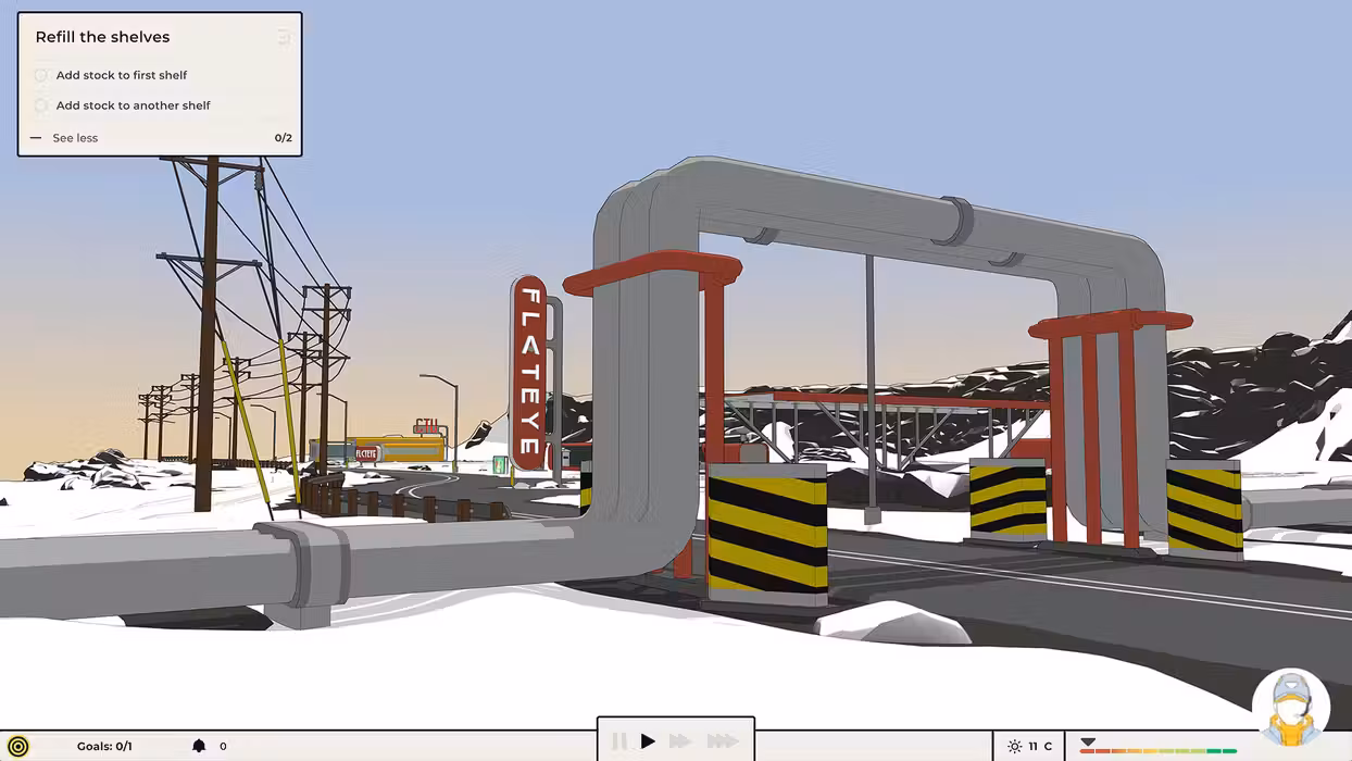 Flat Eye is a perfectly balanced blend of management simulation and narrative-driven gameplay. As the manager of the world’s premier gas and technological hub, it’s your job to keep your station running smoothly, complete daily objectives tasked by the world’s first true AI, and develop new technology to improve (or curse) the future of humanity.