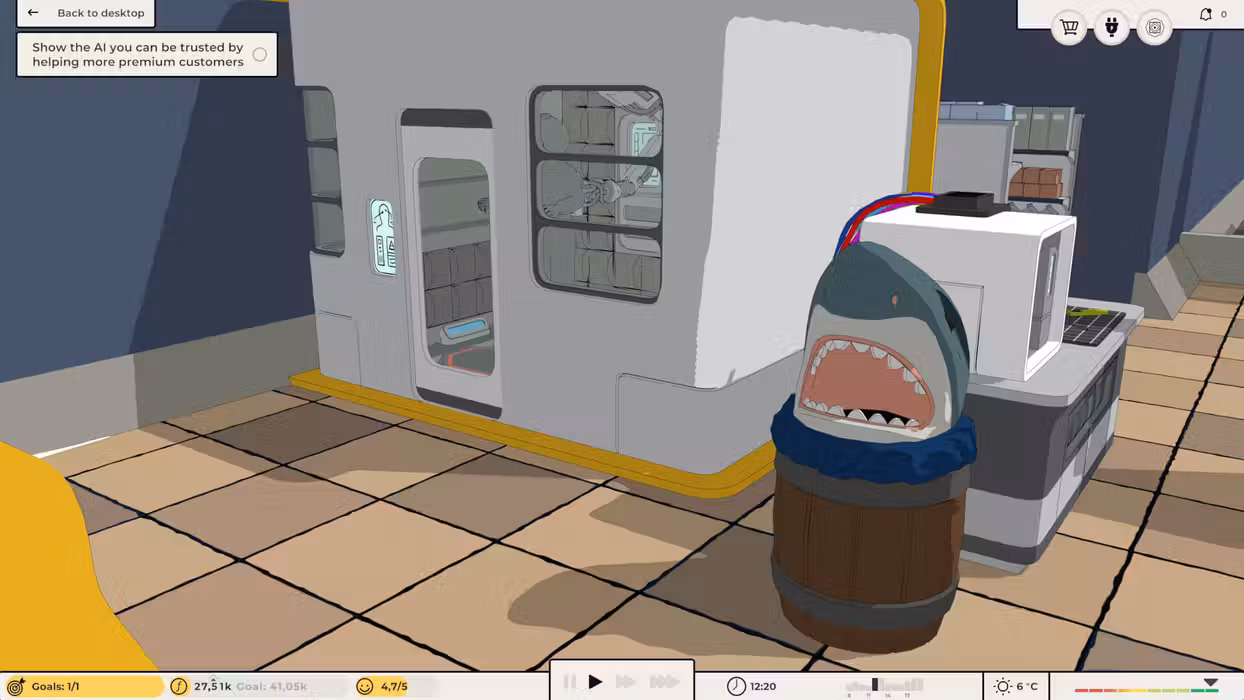 Each day you will need to report your store’s earnings and rating to the world’s first AI (and subsequently, the owner of Flat Eye and its parent company). A word of caution - don’t disappoint them.