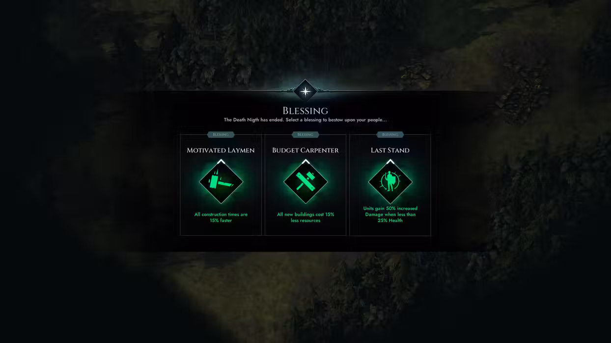 Borrowing from the the roguelite genre, Malices are random afflictions placed on the player during every Death Night, unraveling the best made plans. Conversely, if a Death Night is survived, you may decide between three randomly selected Blessings, enriching the experience and giving your army a much needed edge.