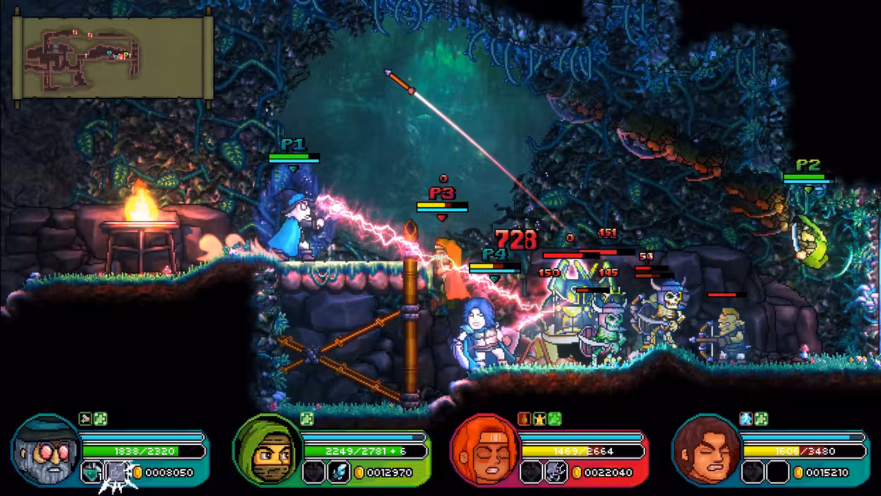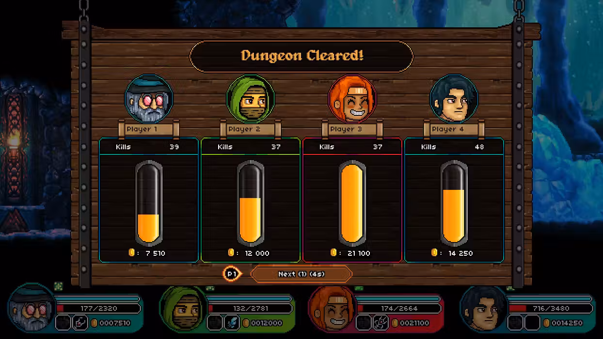 In Bravery and Greed, you can permanently unlock awesome content and game-altering augmentations by levelling up with gold. Greedily grab coins and plunder chests, steal pockets of gold when reviving allies, or be the first to run and grab loot after an epic encounter, get rich or die trying!