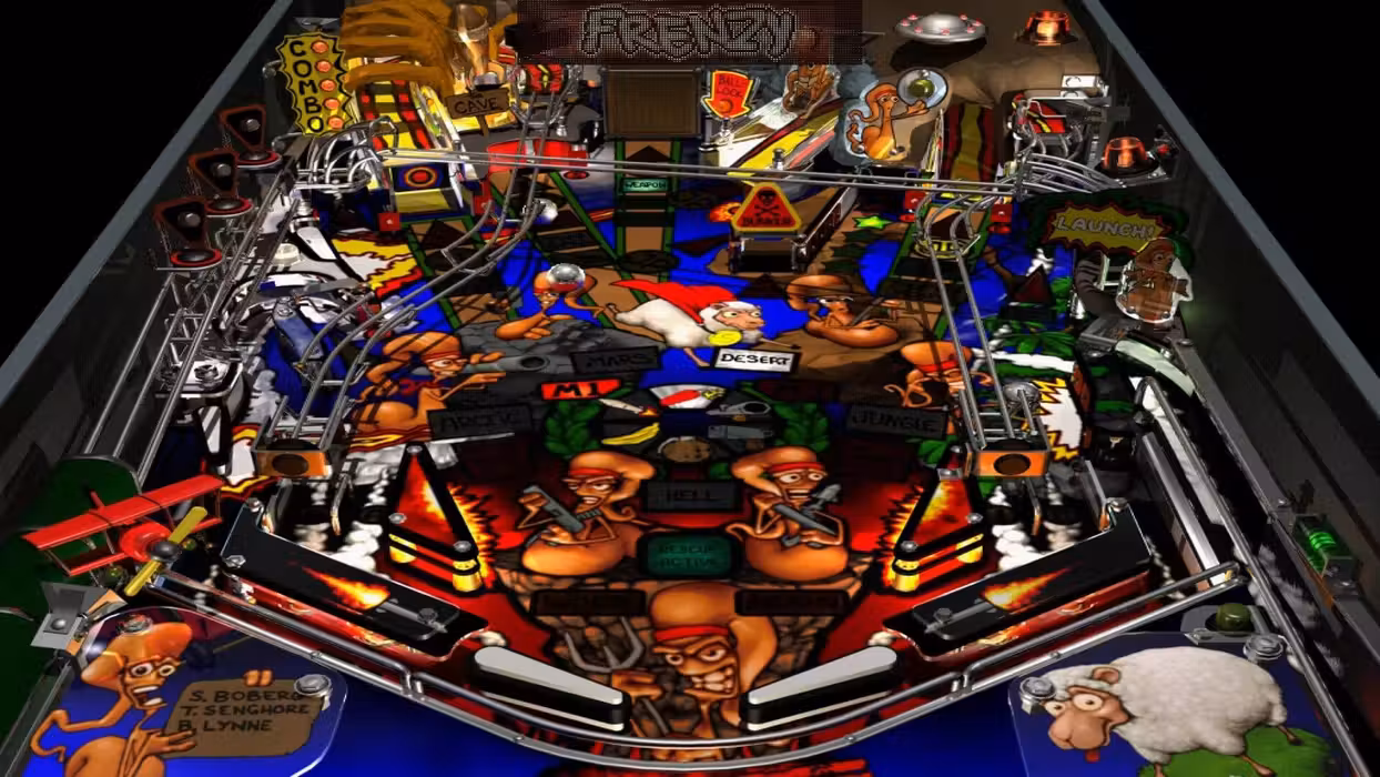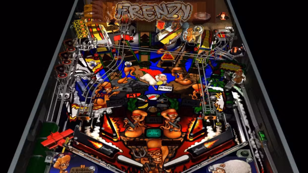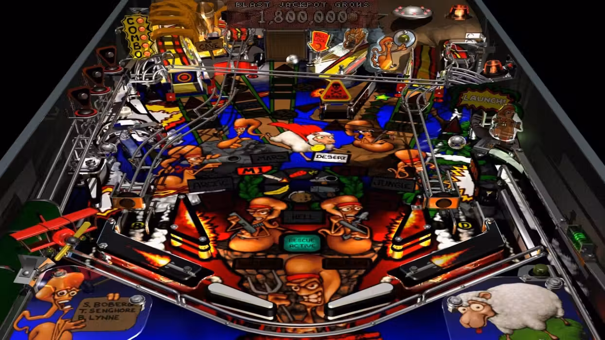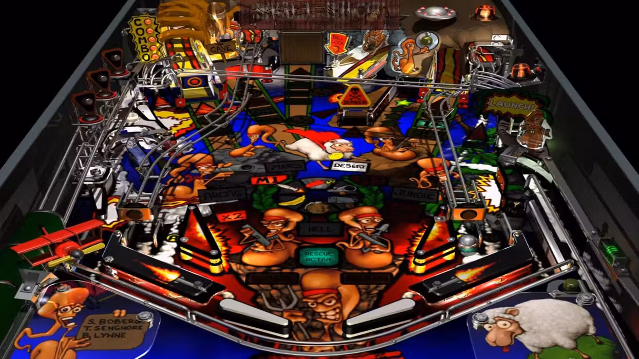 The Worms™ crew returns, and this time they’ve got balls! The classic Worms™ Pinball sends the cute little pink guys spinning across one of the most realistic pinball tables ever created. Battle with honour through the mystic art of Worms™ Kung-Fu or hang at high noon with the grizzliest, pinkest cowboys this side of Texas. Only Worms™ Pinball offers an action packed pinball simulation of pure wormage! Worms™ Pinball leaves nothing to the imagination. The table sports 3D LED displayed sub-games and parallel objectives, transparent ramps, user-controllable moving gadgets, moving mechanical parts and wild sound effects and music. The table contains over 150 animated parts and thousands of frames of rendered FMV animation for the LED display. It’s got tilt functions, hit combinations as well as drop and dead catches, bounce and flip passes, bang backs, death saves, magnetic fields and countless other exciting features. The depth of gameplay, variety of action and sophisticated table rules ensures that Worms Pinball will have all gamers, not just hard-core pinheads, hooked.