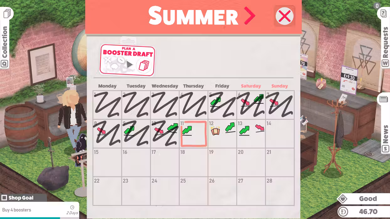 You are Harry Hsu, a young man who recently inherited a card shop from his father, a former champion of the famous card game Warlock. With the shop’s reputation on the line, you start working behind the counter, juggling the locals' requests while trying to familiarize yourself with owning a shop.