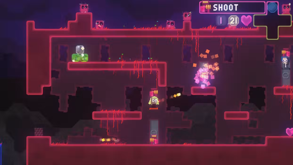 Uurnog Uurnlimited is a delightfully silly 2D platformer inspired by games like Super Mario Bros. 2, Lyle in Cube Sector, and Dyad. Play single-player or co-op, explore the world through its many mysterious doors, solve puzzles and gather the items and animals needed in your Save Room. Careful though — the Save Room also saves your mistakes (urr nurr!)