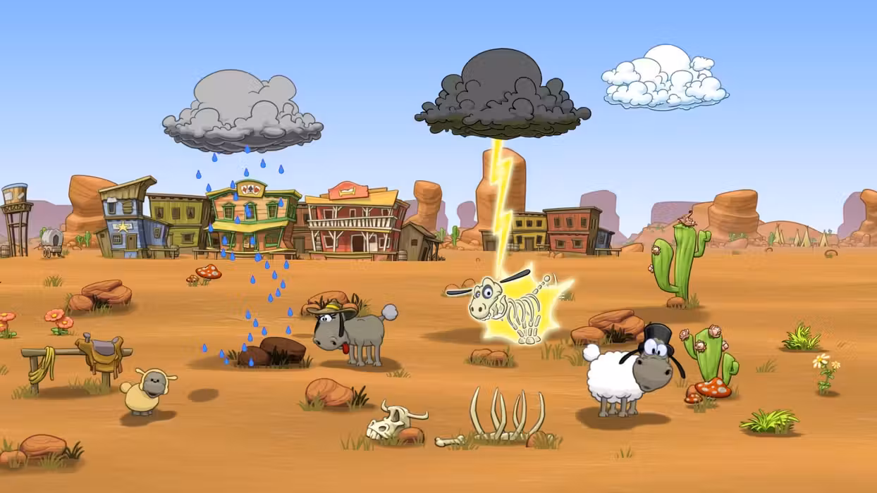 Every single animal is asking for your attention! The fluffy balls of wool love to be entertained. Make your sheep jump and use different toys like the trampoline, the seesaw and the swing to actively play with them! Watch your pets interact with each other and observe their reactions to the objects you give to them! Customize your flock’s pasture with fun objects and choose between different settings like the Wild West or Pirate scenery. Watch your flock run around by day and sleep by the cozy campfire at night. Do everything you can to keep your sheep happy and healthy to prevent them from becoming big, cottony clouds in the sky.