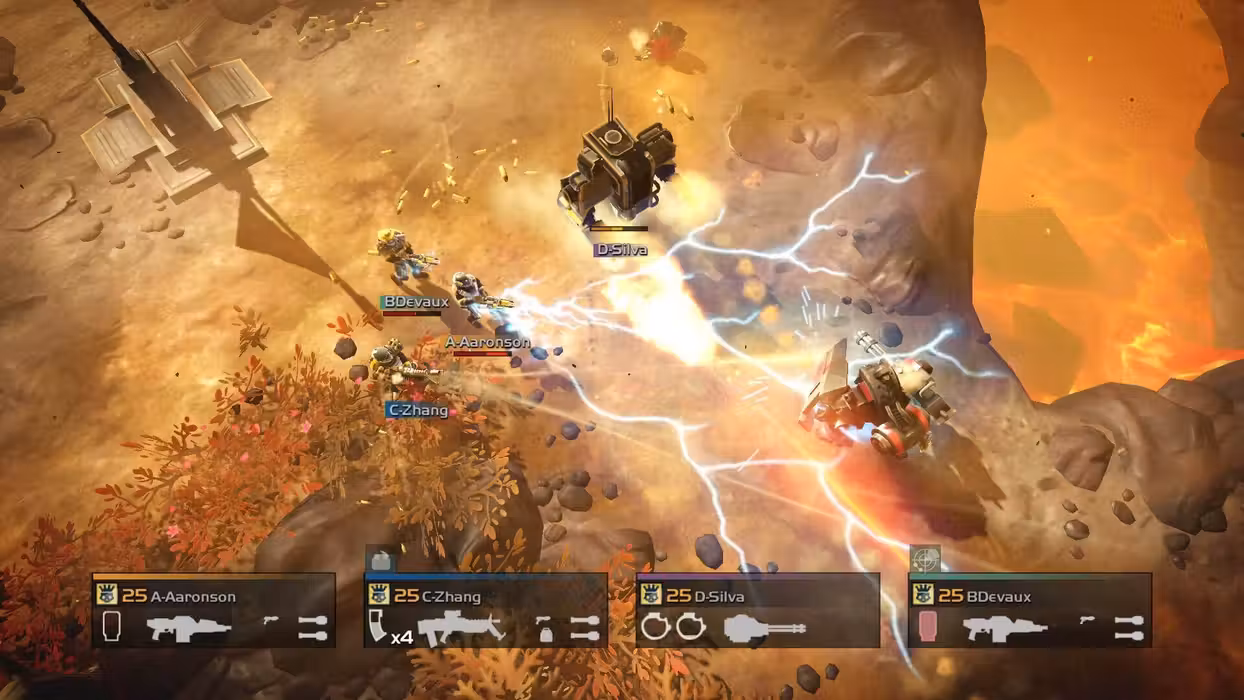 The Pilot HELLDIVER is specially trained to operate the wide arsenal of vehicles available to the HELLDIVER troops. Especially trained in the use of the EXO-48 'Obsidian' Exosuit, Pilots are some of the few that are given the honor of using this heavily armed monster. Though they prefer to use vehicles they are still HELLDIVERS and very formidable troops on foot. The Pilot Pack contains: - The Pilot Uniform (Helmet, Armor, and Cape) - AC-5 Arc Shotgun: A further development of the Arc technology, the AC-5 fires a wide, short range cone and damages everything covered by the static discharge. The charge up is much faster than the original Arc Thrower but the discharge is not quite as powerful. - EXO-48 'Obsidian': A powerful exosuit with two double autocannons. The firepower contained in this walking monstrosity annihilates light and medium infantry, and the two magazines allows for both maximum firepower or conserving ammunition. The only downside to this mech is its distinct lack of anti-tank capabilities.