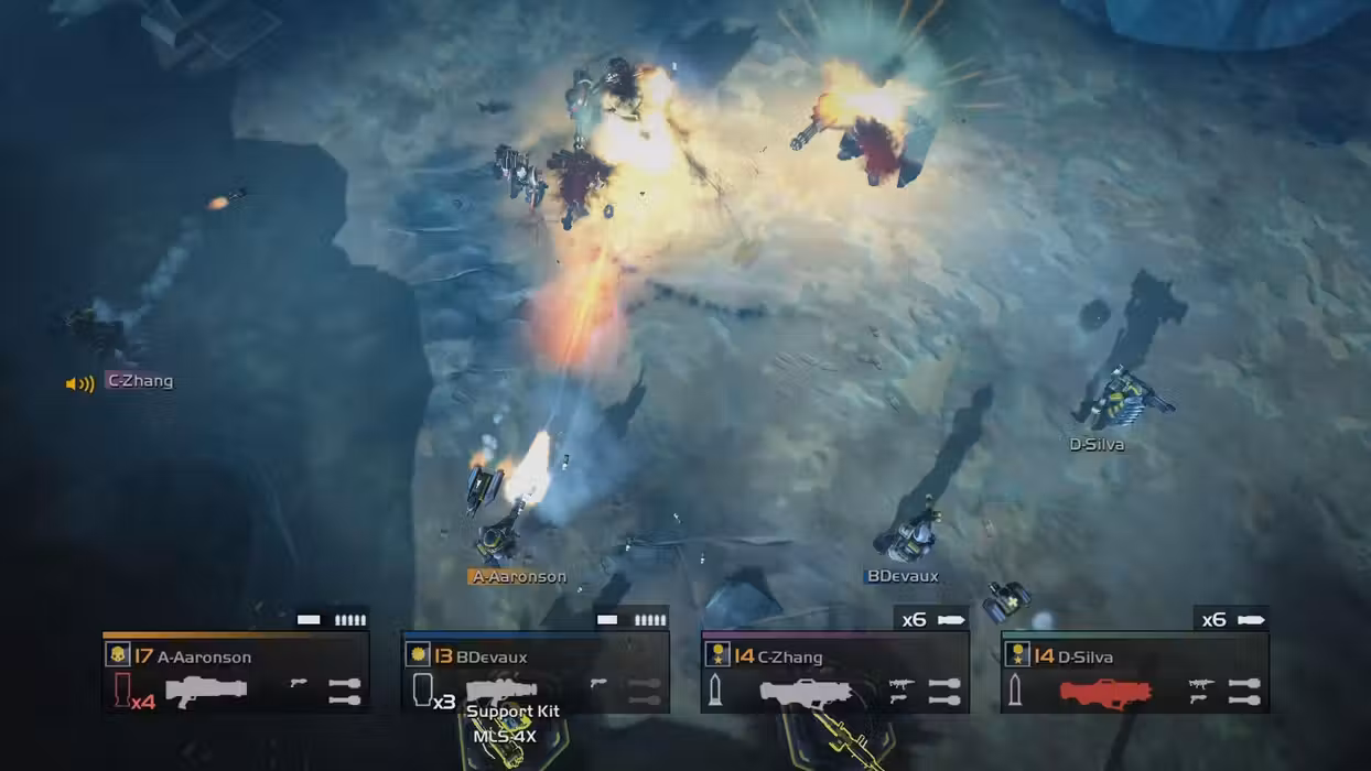 The HELLDIVER Commandos are the best of the best, specialists at being a one man army capable of leaving a wake of death and destruction. Though they are seen as one man armies, the Commandos value teamwork greatly due to their equipment. The Commando Pack Contains - The Commando Uniform, a cosmetic helmet, armor, and cape. - SMG-34 ‘Ninja’: A silenced, compact, submachinegun with short reach and good accuracy. The silenced aspect has been debated much and there is no proof that it actually reduces the risk of detection. - MLS-4X ‘Commando’: A multiple missile launcher system similar to the one used on the EXO-44. From its four barrels it fires seeking missiles at a high rate of fire primarily an anti-personnel weapon, it can be upgraded to have limited anti-tank capabilities.
