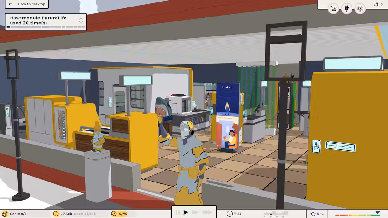 Each day you will need to report your store’s earnings and rating to the world’s first AI (and subsequently, the owner of Flat Eye and its parent company). A word of caution - don’t disappoint them.