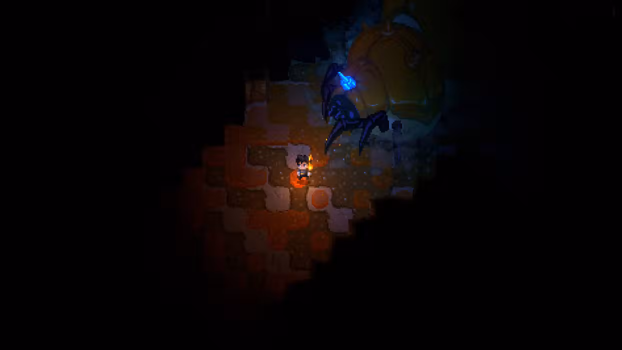 Customise your explorer and craft new items, armour and equipment to venture further into the cave. Craft a pickaxe to mine walls and resources, build bridges to cross underground lakes, and place torches and bonfires to light up the darkness.