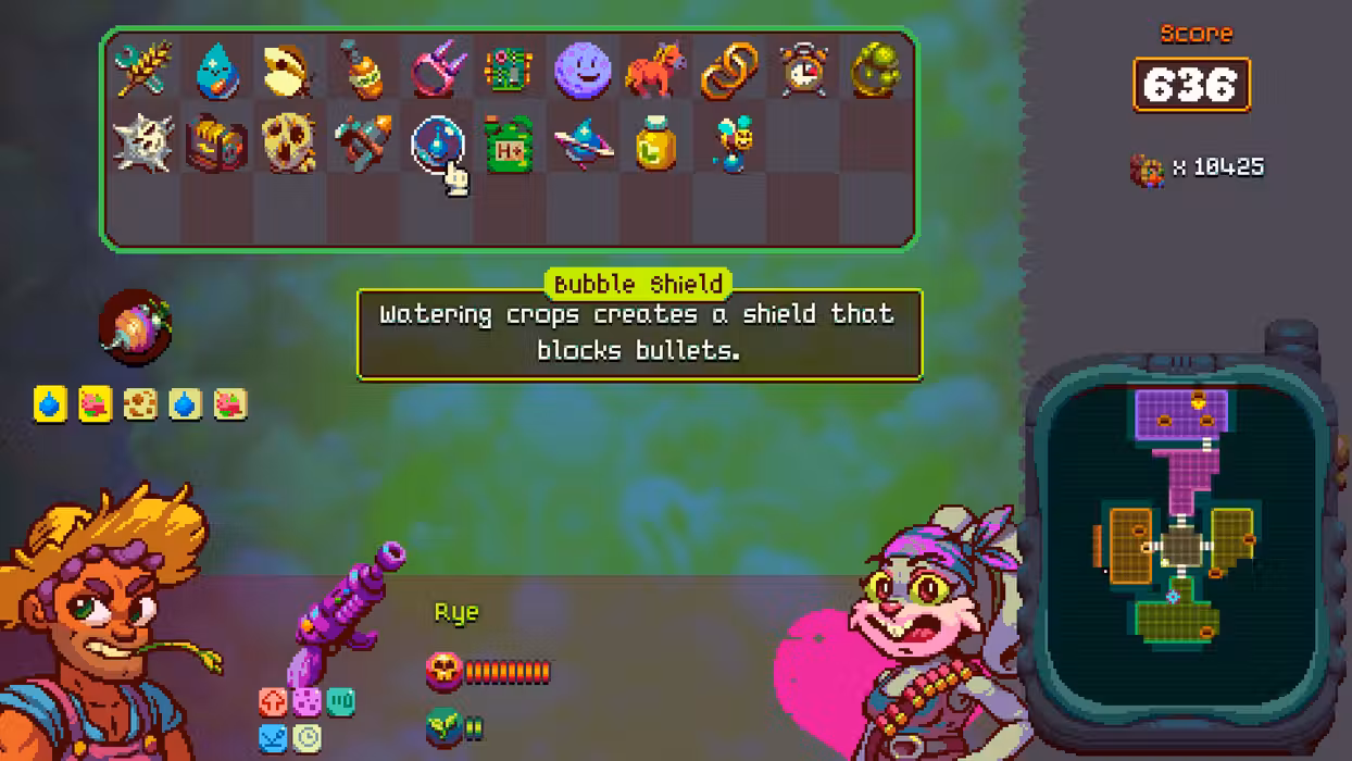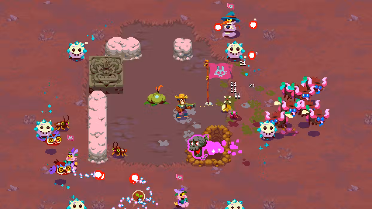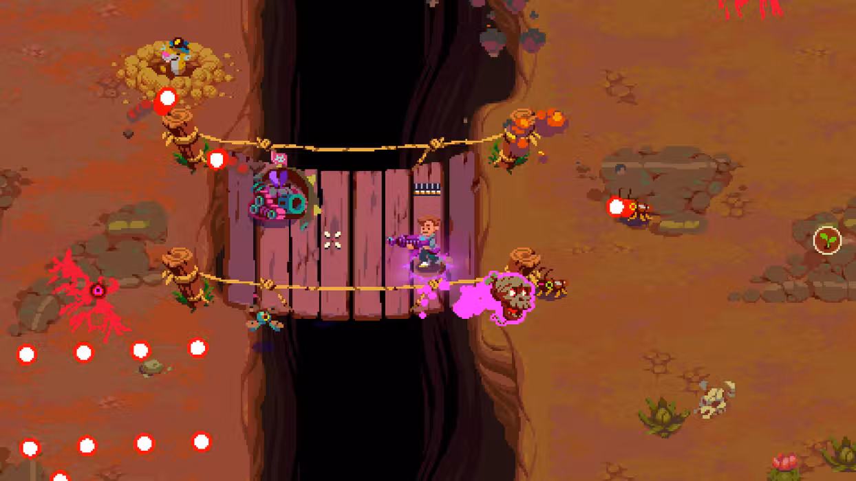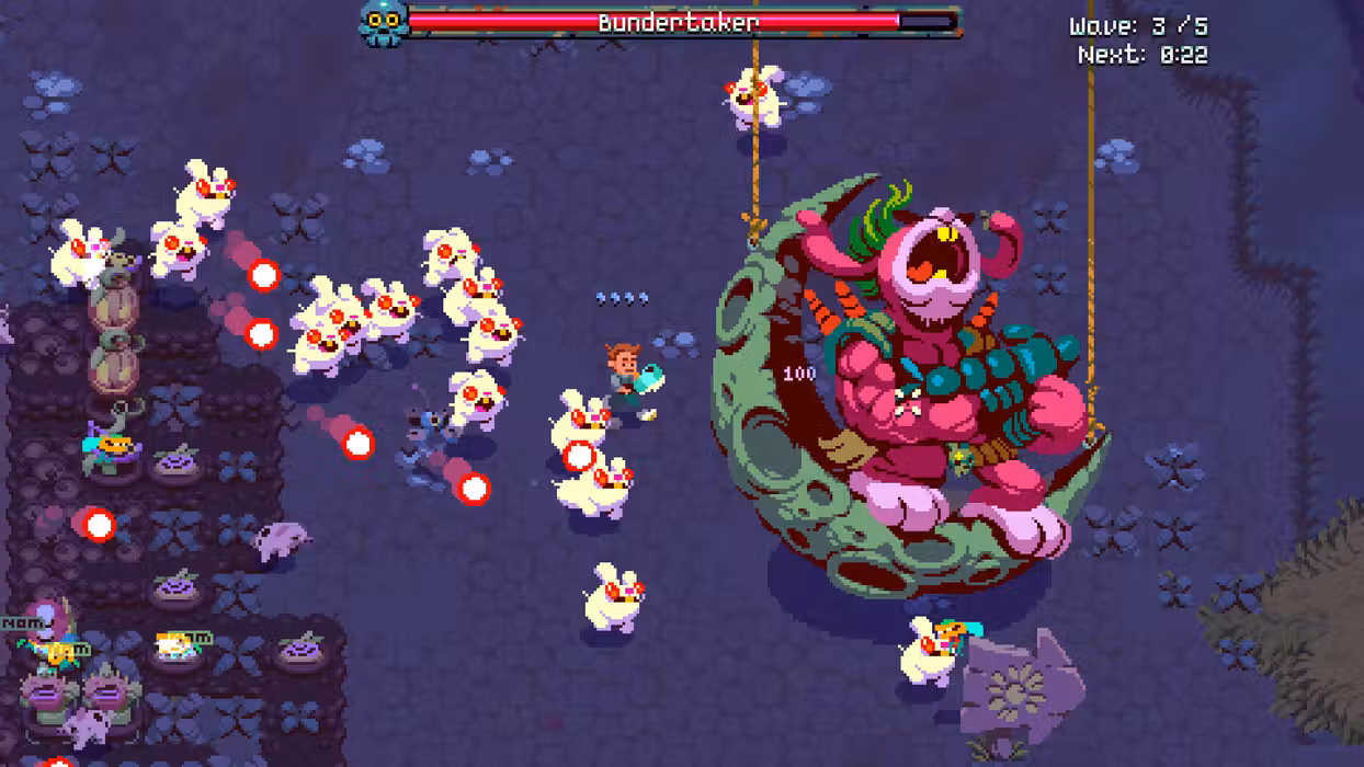 In Atomicrops you will... Farm by sowing and harvesting as many fast growing crops as you can before the day is done to earn a huge profit. Explore the far reaches of the biomes to find useful relics of farms long past. Powerful loot increases your farming abilities and helps you fight enemies. Defend your crops. Fend off nightly attackers looking to eat your crops and leave you starving. Or dead. Fight challenging bosses each season until you reach the final season - the Nuclear Winter. Purchase weapons and items in town at the end of each day. Celebrate the end of each season with special shops and rewards. Befriend an entourage of pig pals, chicken chums and cow colleagues to automate farming tasks. Woo and marry a kindred spirit from the local town to fight and farm alongside you. Permanently Upgrade your farming and fighting abilities. Earn a special currency each run that can be used on permanent improvements and unlocks. Die. Even the easiest difficulty will put your skills to the test. Victory is rewarding and hard earned. Unlock new characters, spouses, difficulties, and permanent upgrades. Most importantly, you can unlock many cats to permanently roam your homestead (yes, you can pet them). Play again! Atomicrops is designed to be heavily replayable with new surprises and item synergies to be discovered in every run. About Modern city life got you down? Well, you've just inherited your late uncle's farm. Time to pack your bags and start fresh in the peaceful countryside. What could possibly go wrong? A nuclear apocalypse, that's what. Now you're in a hellscape wasteland defending the last surviving source of sustenance - your crops. And every mutant wants a piece. Do as any self-respecting farmer would: Farm. Marry. Kill.