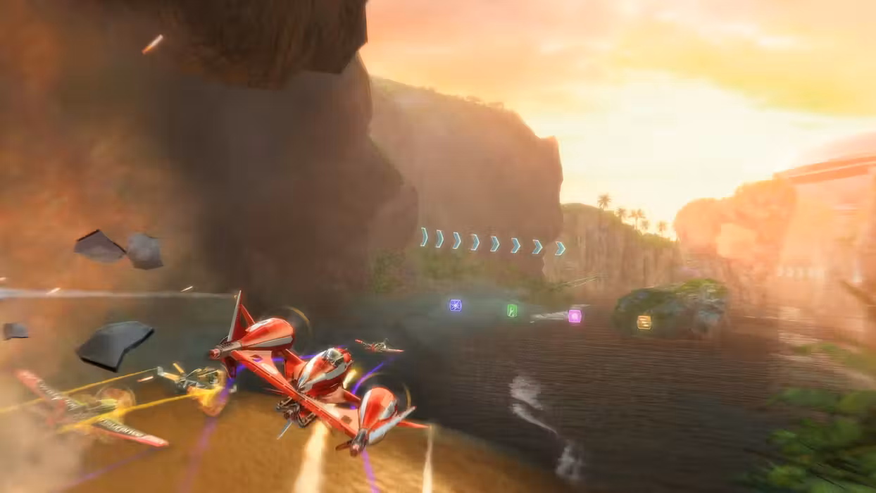 Skydrift Infinity is an action-packed arcade game focusing on the experience of flying alone, and with others, in a light, quick, fast-paced style. In various game modes, you can partake in deathmatches and armed races as well as other competitions, using modern airplanes, tuned to the max, and armed to the teeth with extreme weaponry. Your goal is simple: if you can't overtake them, shoot them down! Play alone, with your friends, or compete against previously unknown online challengers! For relaxation explore exotic islands, the venue of the races, and arena modes. Here you can break free of the 2-dimensionality, that restricts other racing games! Your possibilities are limited only by your imagination! Features: Race with planes and beat your opponents by using the drifting mechanic and power-ups. Vintage, Modern, Fantasy: 16 planes with four different paint jobs each ensure everyone will find their new favorite aircraft. Six Power-ups! Capture up to two different powers in your plane’s arsenal, then collect upgrades to increase the strength of those existing powers. Strategy becomes key as you must choose which powers to keep, which ones to upgrade, and which ones to convert into Boost energy. Stunning Visuals: Race through scenic venues like canyons, tundra, or tropical islands, created with beautiful, vibrant colors. 8-person Multiplayer: Take your friends down online in this fast and furious battle. 5 Exciting Game Modes: Power Race Mode is high-speed racing paired with power-ups; Speed Race Mode, in which players navigate the course through ring targets that increase aircraft velocity, and Survivor Mode where pilots race against the countdown clock and each other. Plus Deathmatch and Team Deathmatch on top of all of that! Splitscreen mode for local multiplayer