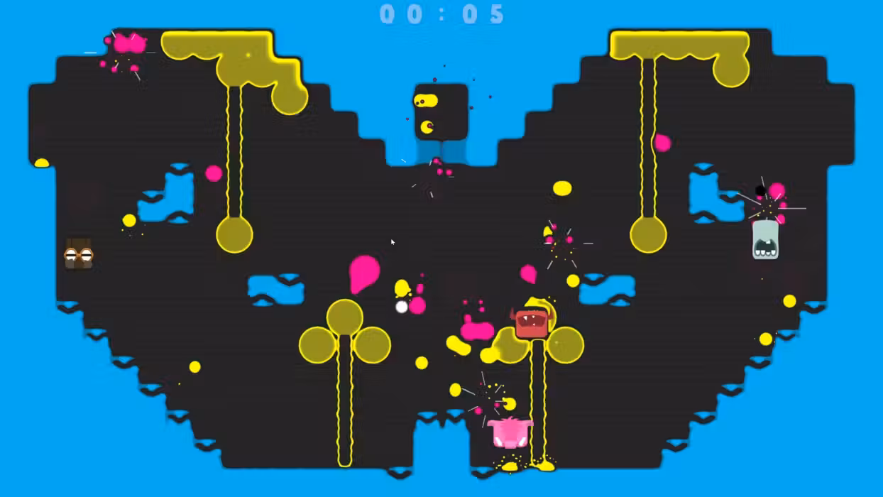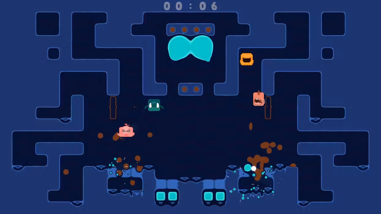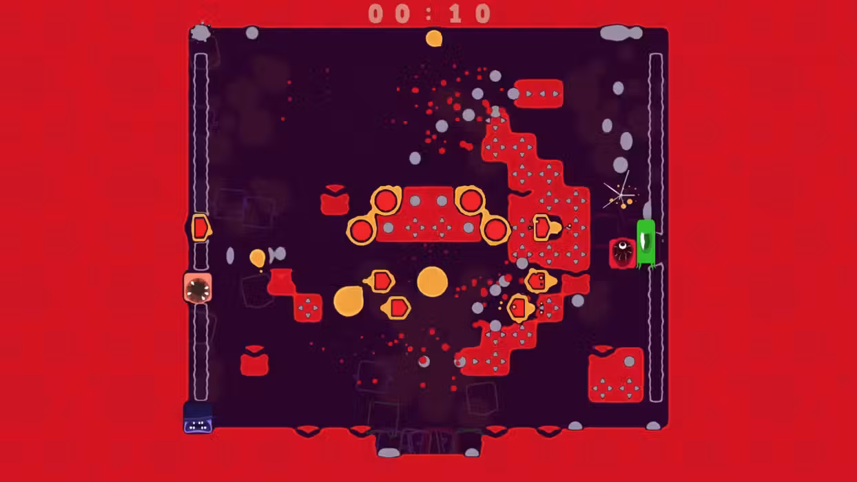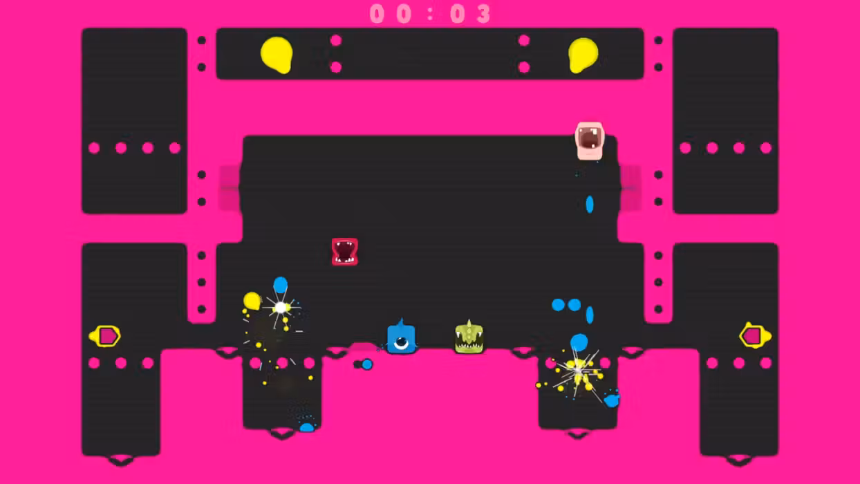 Once You Spit, You Can’t Quit! Spitlings is a chaotic action arcade game for one to four players. It puts you in control of the titular Spitlings: charming rectangular creatures with teeth they can spit at bubbles or use to jump!Your goal is simple, but hard to achieve: Get rid of all the bubbles bouncing around the screen! A True Co-op Experience Spitlings is a multiplayer game that takes cooperation seriously:If one player fails, everyone restarts the level together. This makes it a challenging frenzy - perfectly suited for playing with friends both locally and online. Prepare for intense moments and a lot of shouting, as you and your friends will beat level after level by the spit, uhm, skin of your teeth. You will always have to keep an eye on your limited supply while jump out of the way of the bouncy bubbles and try to split them. Beat the time challenge of each level to unlock its harder b-side version, plus even more playable Spitlings and color themes! Story Campaign The Spitlings are happy little creatures, living a peaceful life in their skyscraper hometown. Their only problem is the weather: It rains nasty goop that turns into bubbles, entraps the Spitlings and wrecks their town! There is only one option: They’ll have to split all bubbles and free their friends on the lower floors. Along the way, who knows what they might encounter… Arcade Mode Be sure to check out the party mode that comes with mutators which add another layer of chaos. Want to play in the upside down? Never stop jumping? Put on a space helmet? We got you covered! Tune your preferred game modes, mutators and level pools as needed to fit the experience to your liking. Then invite your friends and start spitting! Your performance will be judged with an array of unique medals... Features Action-packed, highly engaging, scream-at-your-friends multiplayer fun Play the whole game with up to four people If one fails, all restart: It‘s co-op with all the outrage of versus on top! Play 100+ levels and beat the clock to unlock the challenging b-side versions Unlock 70+ themes and 100 Spitlings to play with Experience the story through detailed, interactive comic cutscenes Increase the chaos in party mode with several unique mutator sets Nod your head to the pumping soundtrack with 12 tracks of finely tuned bangers