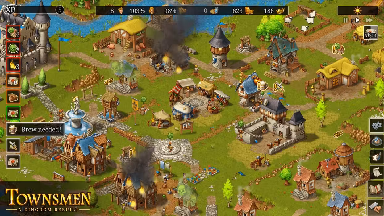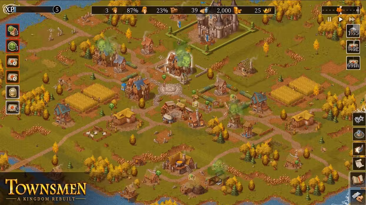 Welcome, your Highness! A vast land awaits your settlers and is ready to be colonized. Send your architects and builders to plan and construct a city. But also send your craftsmen, to cut some wood and to mine ore. Make sure your fields are on fertile grounds, to get all the food for your hungry subjects! Townsmen – A Kingdom Rebuilt hands the crown to you: Guide your people from their first steps in a small village to a massive medieval metropolis with thousands of inhabitants.