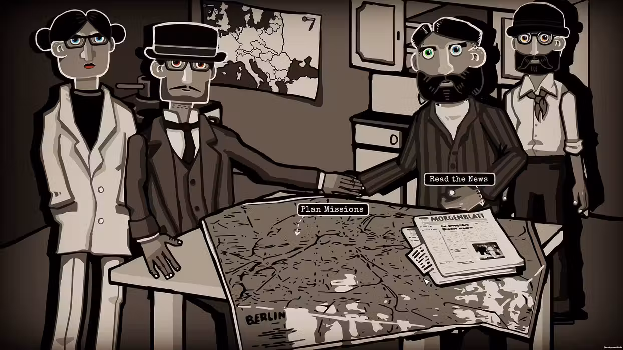 Dark times mean fear and risks. The risk to be caught by patrolling National Socialists, looking for people who publicly stand against their point of view. The risk of being beaten up or even killed by the German military because we're opposing the regime. The risk of losing everything, including our loved ones. This is how we live. This is how we try to survive. Through the darkest of times. You are the leader of a small resistance group in 1933's Berlin, of ordinary people, from Jews to Catholics and Communists to Patriots who simply can't stand aside. Your goal is to deal with small blows to the regime – dropping leaflets to spread awareness about what the Nazis are really up to among the people, painting messages on walls, sabotaging, gathering information and recruiting more followers. And all of that while staying undercover – if the regime's forces learn about your group, the life of each member is in grave danger. Through the Darkest of Times is a historical resistance strategy game, focusing on conveying the somber mood of the period and the very real struggles of average people living in the 3rd Reich. Historical accuracy means that your small group of resistance fighters will not change the outcome of the war, nor will you prevent all of the Nazi's atrocities, but you can certainly do everything in your power to save as many lives as you can and oppose the fascist system wherever possible. Features: Experience the Darkest of Times in 4 chapters Fight for freedom, weaken the regime and lead your resistance group Plan activities, find collaborators and try not to get caught Feel the weight of responsibility as you make difficult decisions and face the dire consequences Beautifully illustrated expressionistic scenes and events MATURE CONTENT DESCRIPTION The developers describe the content like this: This Game may contain content not appropriate for all ages. Some scenes feature disturbing content in the form of narrative text or imagery and a sensitive general theme.