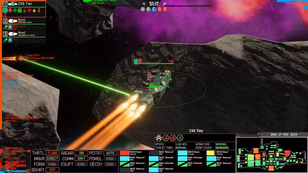 Take command of a fleet of space warships tailored to your exact play-style. Favor a small task group of robust, flexible multi-role combatants, a large group of specialized ships, or something in between. Do battle in a heavily simulation-based tactical game featuring everything from kinetics and beam weapons to realistic radar and electronic warfare. Nebulous seamlessly blends the thoughtfulness of pre-mission planning, tension of battle decision-making, pressure of real-time action, and pain of inevitable sacrifice into an intense tactical space game that will keep you reflecting on every decision (and mistake) for hours after each battle.