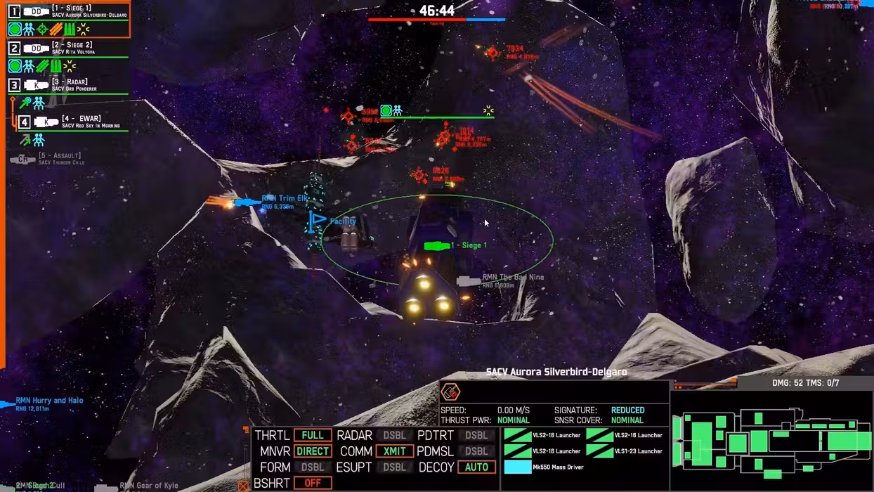 Take unparalleled control of every unit right down to their individual mounts. Keep your entire fleet together, dynamically split off task units, or give each ship its own assignment. Large maps with lots of cover and radar occlusion make methodical positioning and sight lines critical. Massing firepower in one place is not always the best solution, as the enemy could come from any direction in the fully 3-dimensional battlespace. Covering your retreat is always in order.