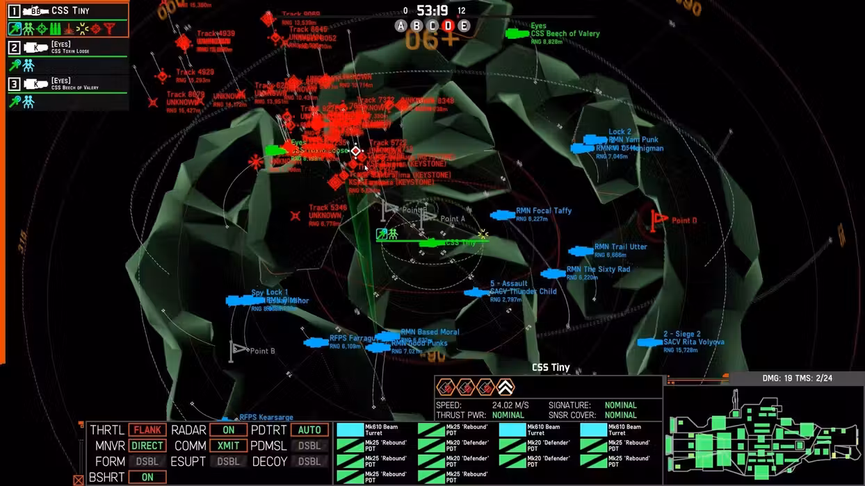 Occlusion, passive signal detection, balancing radar signature size, and the ability to deceive the enemy makes the fight for intel a critical part of every battle.