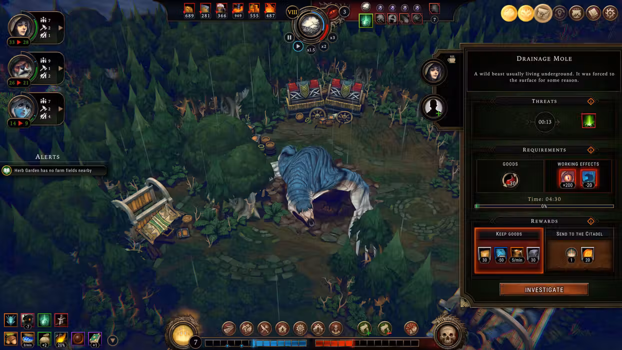 You are the Viceroy – a leader charged by the Scorched Queen to reclaim the wilderness and discover lost riches for the Smoldering City, civilization’s last bastion against the Blightstorm that destroyed the old world. Unlike most survival city builders where your focus is on a single city, in Against the Storm you must build a vast, prosperous network of settlements populated by diverse fantasy races, each with their own specializations and needs. But the wilderness holds many hidden dangers, and never-ending storms will batter your population into submission. If your settlements should fall, then the expedition may end – but not the game. Against the Storm is a roguelite city builder, meaning you will carry forward the resources, upgrades, and experience of your past expeditions each time you set off for a new journey into the wild. Manage a diverse population of villagers Beavers and lizards stand alongside humans and harpies in the struggle to survive. Utilize each group’s strengths as you balance varying needs, from housing and culinary preferences to taste in luxuries and recreation. Manufacture raincoats, brew ale, and bake pies to boost morale in the face of the oppressive hostility of the forest. City Builder meets Roguelite Experience core city builder gameplay enhanced by roguelite replayability. Build new settlements and collect valuable meta-progression resources to upgrade the Smoldering City. Recurring Blightstorms pose an inevitable threat to settlements, but they also reshape the world and open new opportunities for growth. Never the same game twice With hundreds of gameplay modifiers and 5 distinct biomes, every city location presents unique challenges for even the most resourceful Viceroy. Adjust your strategy to changing weather conditions and experiment with settlement “builds” — rosters of building blueprints and perks that can help your society thrive or bring it to ruins. Mix and match ingredients to take advantage of the resources at hand. You never know what wares the Trader will bring next year, and the forest hold treasures, resources… and ancient threats. Build an endless number of cities Laying the foundations for a new city is one of the most exciting moments in a city builder game. In Against the Storm, you’ll have the opportunity to repeatedly create new settlements, while still interacting and trading with previously established cities in a growing world.