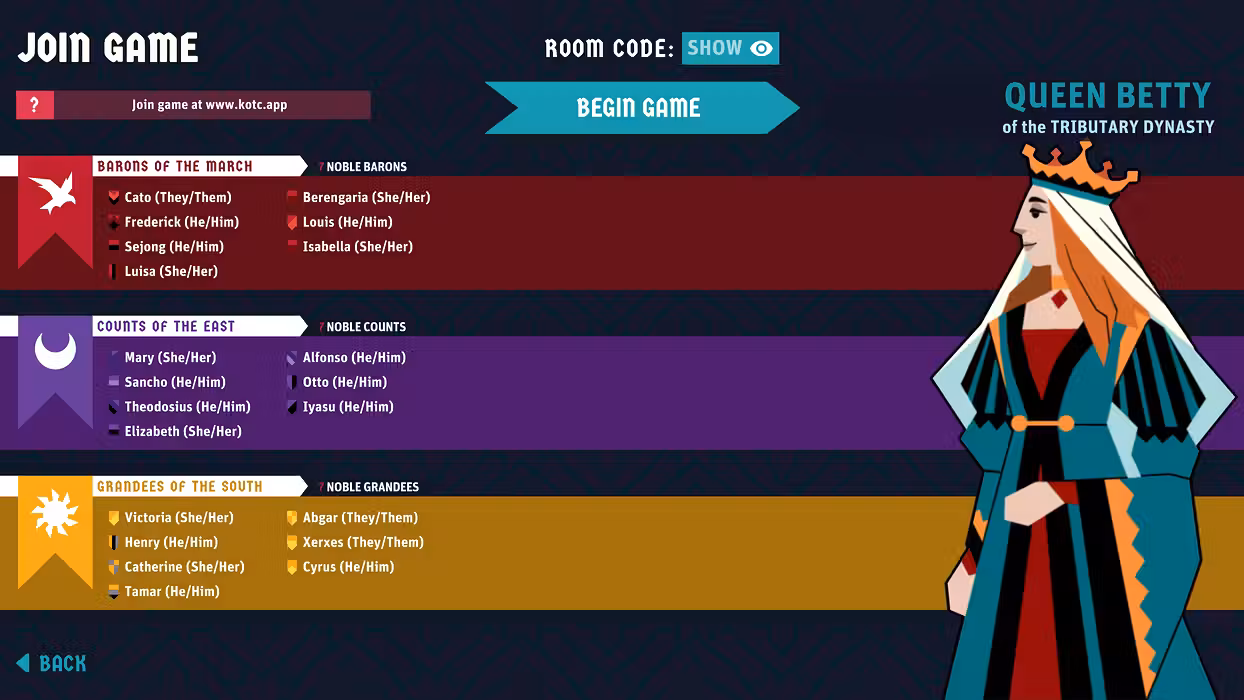 - Customize your Kingdom. The Monarch and Nobles can choose their own name, appearance, pronouns, and shields.
