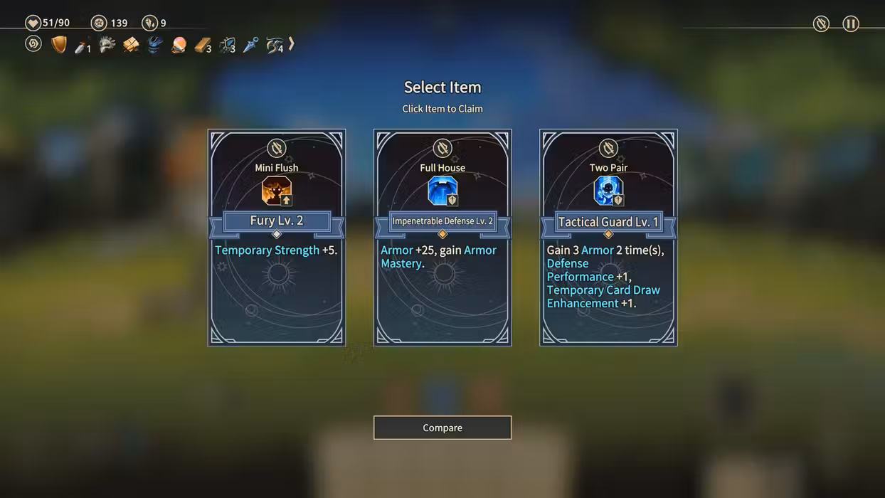 You'll need to crack open the enemy's defenses, bolster your grit and resolve, all while outsmarting the underhanded foes you face. Use your deck of playing cards to activate skills, attack foes, and defend yourself with card combinations, such as two pair, a full house, or straight flush. Through battle, discovery, and clever decision-making, you'll upgrade and enhance your build to complete the toughest challenges Zoeti has to offer.