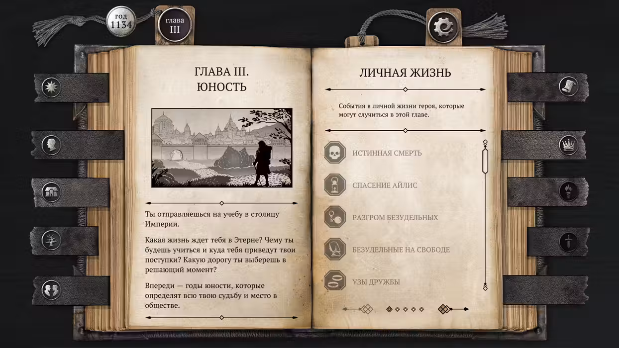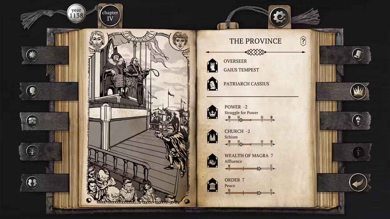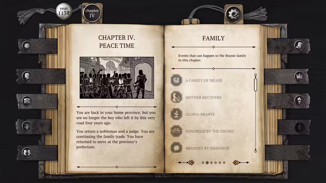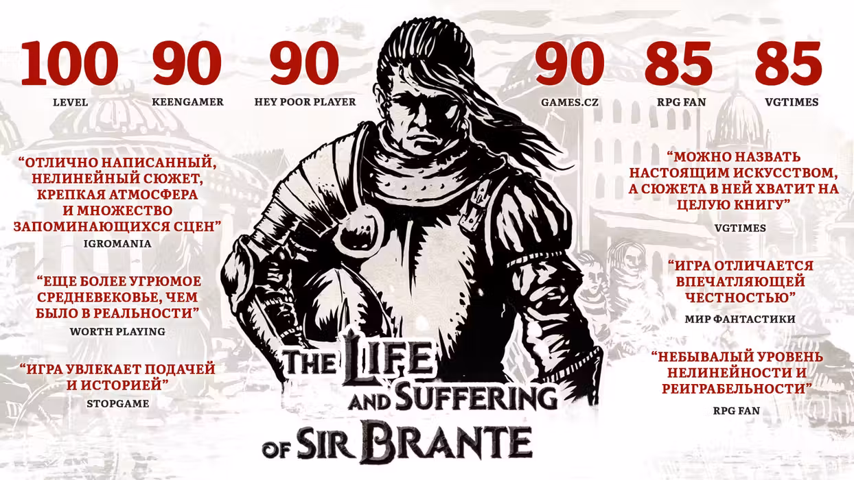 The Life and Suffering of Sir Brante is a narrative-driven RPG that comes to life on the pages of the protagonist's journal. Set in a ruthless world where any form of dissent is mercilessly crushed, the story follows a man who has dared to challenge the existing order. Set out on a lifelong journey and become an individual able to carve out their own destiny... But remember that freedom never comes cheap. Life in the Great Arknian Empire is harsh and its hardest Lot is yours by the circumstance of birth. You are a commoner, holding no rights and no title. To seize your fate and become the rightful heir to the legacy of the Brante family you will have to come to grips with ossified tradition and prejudice. Embarking on a life-long journey from one's birth until true death, you will have to endure great upheavals, face adversity, and make many difficult choices. Every decision will affect not only the protagonist, his family, and loved ones, but may even topple the foundation of the Empire itself. Key features At the turn of time Every imperial citizen's life is predetermined by their estate. The deities known as the Twin Gods have bestowed this truth to the world, dividing mortals into Lots. The nobles lead and rule over others, while the clergy guides people on the one true path, and the lowborn suffer, toiling away for the glory of the Empire. You may accept your fate without question, but it is also in your power to change the cosmic order that governs all. Your choice is not an illusion Divided into chapters, the game keeps track of the player's deeds, the skills they acquired, as well as other overlapping circumstances that shape a unique plotline for each playthrough. Every decision has its consequences and you will be held accountable throughout the entire journey. To protect your family and loved ones, to impose the rule of the Emperor and make a fortune, or to try and change the world as you see fit... Make your choice, but beware of the follies of pride and ambition. Fight for your life One man is anything but omnipotent in this realm yet under your guidance, Sir Brante may become a person who can endure every trial fate throws at him and rewrite the very laws that govern his world! Develop and train your character, leveling up such traits as determination, sensitivity, and endurance. All of the hero's skills, starting with those acquired in infancy, will affect his personality, worldview, and relationships, ultimately unlocking new talents and possible storylines. Find your own path The first complete walkthrough can take you upwards of 15 hours! Numerous branching paths that affect the unfolding story will make every playthrough a unique experience: become a noble judge, learn the ways of the inquisition, plot a revolution as a member of a secret society, or embrace an entirely different purpose. Be brave and fate itself shall bend to your will! There and hereafter Resurrection system allows the character to keep his experience upon death, letting the player reevaluate past steps and make adjustments to their strategy going forward. Take control not only of your life but also your demise, then put everything at stake in this cycle of death and rebirth!