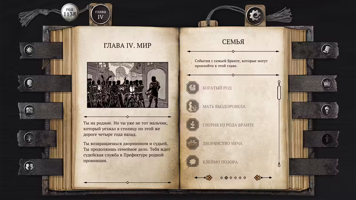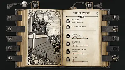 Divided into chapters, the game keeps track of the player's deeds, the skills they acquired, as well as other overlapping circumstances that shape a unique plotline for each playthrough. Every decision has its consequences and you will be held accountable throughout the entire journey. To protect your family and loved ones, to impose the rule of the Emperor and make a fortune, or to try and change the world as you see fit... Make your choice, but beware of the follies of pride and ambition.