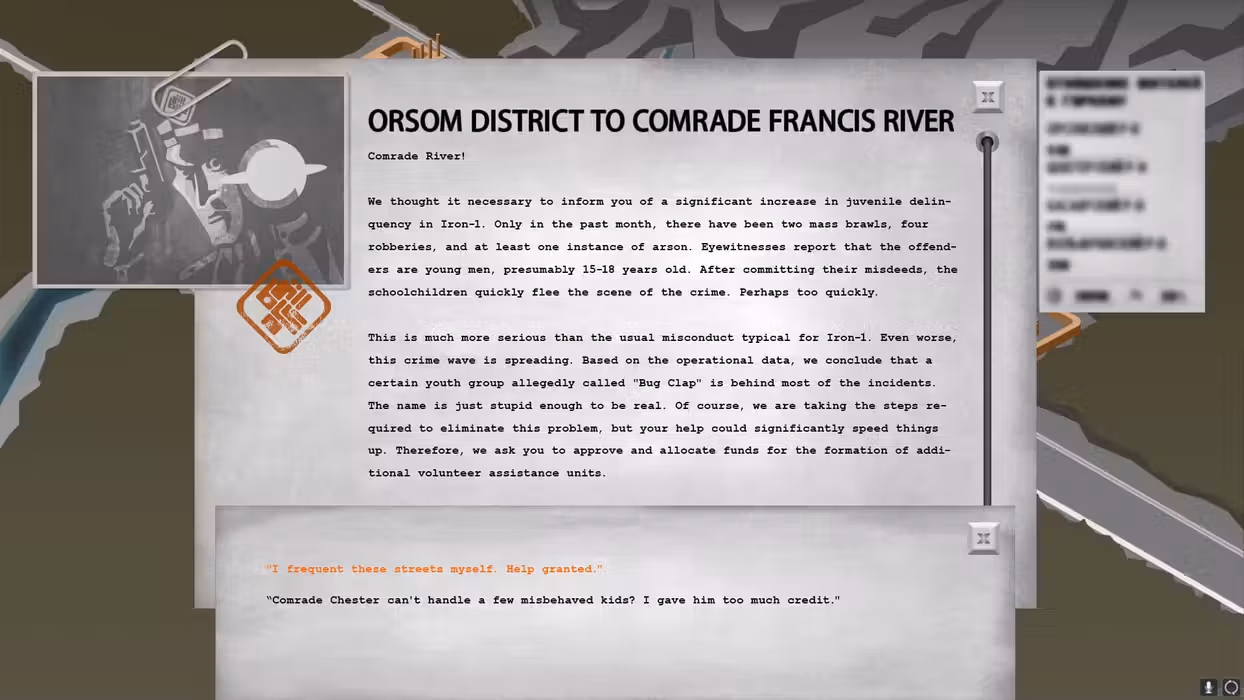 Congratulations, dear comrade! From now on, you are the head of a small but important industrial center bearing the proud name of Iron-1. Your task will be to manage and rebuild it amidst the formation of a new totalitarian regime, currently faced with the consequences of the recent revolution, such as a deepening social crisis and an utter economic deficit.