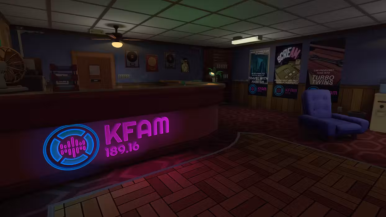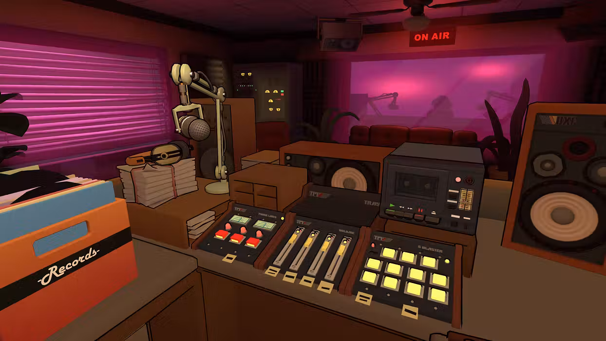 · Explore over 1 km² of an authentically detailed radio station and interact with dozens of physics-based objects straight from a bygone era, including a working cassette and record player.