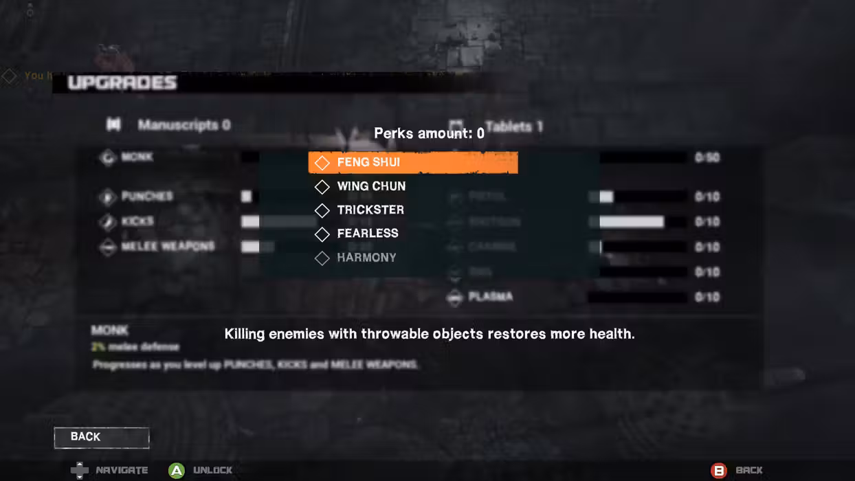 Disarm-or-Dismember System: Use a unique combat move to either disarm enemies of their fire arms, or dismember certain enemies at will and use their limbs as melee weapons.