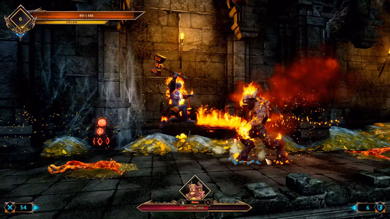 Demon Skin - is a brutal hack’n’slash set in a rough dark fantasy world, which combines unique combat mechanics, RPG and fighting game elements, and even some platformer features. With the flexible combat system each player can come up with their own unique tactic by skillfully combining stances with various types of weapons to achieve the ultimate efficiency in battle. The darkness has got into the far off corners of the universe and threatens the world. Only the mighty Order of Wanderers whose members possess superhuman divine powers can resist that threat. One of the Wanderers witnesses a sinister ritual of restoring a powerful ancient artifact. In an attempt to break off the ceremony he gets into a flow of energy released by the artifact and instantly turns into a demon! Wanderer is now eager to regain his former appearance but to do so he needs the artifact which was stolen afterwards. The hero sets on a path to find it, fighting the hordes of demons along the way. Improve your skills by mastering various stances for lightning-fast parrying and inflicting maximum damage with spectacular finishing moves! Keep an eye on the level of stamina and other indicators of the character’s physical condition - all these features directly affect the outcome of the battle. Collect shards of Crystal and become even stronger, build up your bone armor and turn into a fearsome demon. There are more than 30 types of edged and blunt weapons at your disposal and each type is only effective against a certain type of enemies. You can destroy enemies even with your bare hands - it’s not as effective but still a lot of fun! - An extensive skill tree. Gain experience to learn new combos and enhance health, stamina, and attack power! - Dozens of enemy types. From skeletons, zombies, and spiders to werewolves, lizards, and golems - fighting each of them requires a different approach! - Secrets and artifacts. Some rare and ancient artifact weapons are hidden in the secret places of the game world. Find it to unlock the impressive super skills after achieving a certain level! - Gloomy landscapes in the spirit of dark fantasy: from the icy wastelands and deep dungeons to the twilight forests and abodes of the undead. This cruel world lives a life of its own, but terrifying creatures that inhabit it are not always hostile. On your way, you will not only meet enemies but also powerful allies!