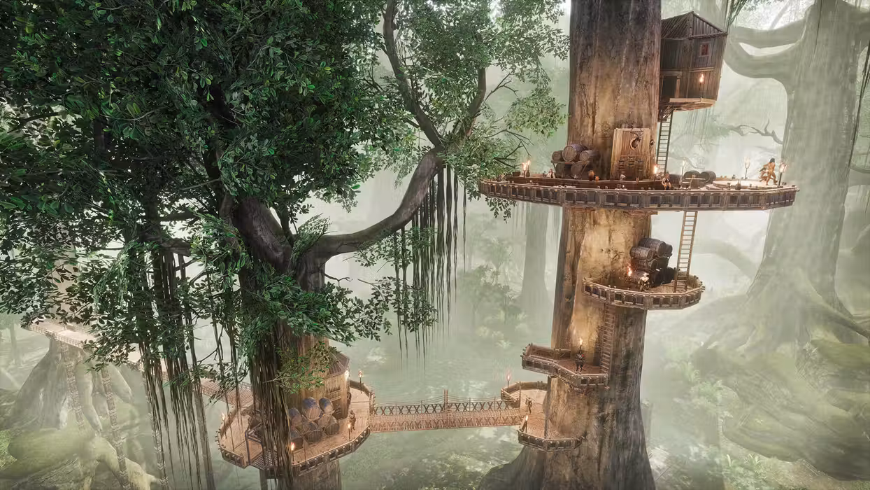 Surrender to your base desires of lust and excess through the Debaucheries of Derketo Pack. Build your own tavern with a host of new placeables. Let it overflow with drink, play games or craft a stage for seductive dancers and entertainers. Take your treetop buildings to a whole new level with the new tree hut foundation and rope bridges and even make an opulent bedroom adorned with red curtains and a luxurious bed. Play around with twelve exclusive emotes, like juggling balls in the air or throwing your beer mug to the ground after a deep drink. Dress yourself alluringly in new jewelry, dancer and noble outfits or serve in your tavern looking like an innkeeper. Debaucheries of Derketo Pack contains: - 10 new building pieces Pieces to build rope bridges, stages and a tree hut foundation - 10 new armor pieces in two sets, such as the Dark Templar armor Two heavy sets with an epic end-game version of each - 12 new exclusive emotes Juggle, drink beer, look nonchalant, angry and much more - 10 new outfit pieces, such as the innkeeper and noble Decorative clothing perfect for roleplayers - 6 new warpaints Decorative warpaints symbolizing emotions, like passion or lust - 29 new placeables for building a tavern interior plus more Craft wine racks, curtains, tavern counters and chess sets - 10 new jewelry pieces Two sets of jewelry, one in gold and one in silver All the new content from Debaucheries of Derketo is exclusive to this DLC and adds a host of new visual options but does not give any in-game advantage in power. All the new items have comparable stats to existing items.