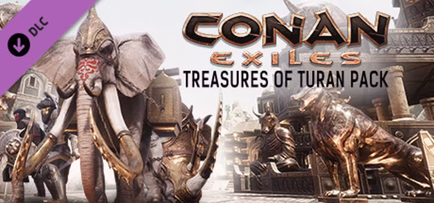 The riches of the eastern kingdom of Turan await! Build opulent palaces adorned with glittering statues, tame rhinos and elephants as pack animals and dress yourself in the dazzling Turanian Phalanx armor. This new content pack offers exclusive content from the Turanian culture. It allows you to use all new building pieces, placeables, armor sets, weapon sets, warpaints and pets! Treat yourself to the most ostentatious gear and building pieces in Conan Exiles yet. Enjoy the golden decorations of the building pieces and finely wrought weapons and armor. Treasures of Turan Pack contains: - 39 new Turanian building pieces. A full set of building pieces with the same stats as existing tier three - 15 new armor pieces in three sets, such as the Turanian Mercenary armor Light, medium and heavy sets with an epic end-game version of each - 9 new weapons in one Turanian weapon set Same power as iron weapons with an epic end-game version of each weapon - 5 new Turanian warpaints Decorative warpaints symbolizing for example opulence and glory - 9 new placeables, such as the standing lamp and brazier Craft them at the new Turanian Artisan table - 2 new exclusive pack animal pet skins The richly adorned caravan rhino and elephant All the new content from Turan is exclusive to this DLC and adds a host of new visual options but does not give any in-game advantage in power. All the new items have comparable stats to existing items.