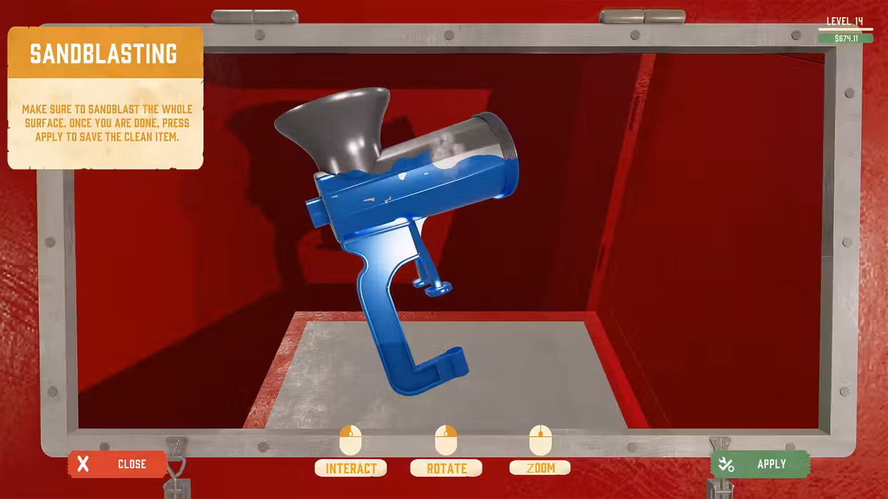 - Experience the satisfaction of cleaning old, worn-down items to a bright shine. Sandblast rust away to reveal gleaming metal. Paint your items however you wish with custom painting tools.
