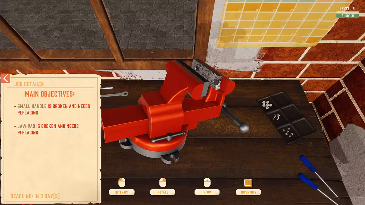 - Unlock new equipment & tools, and customise your workshop to make it your own.