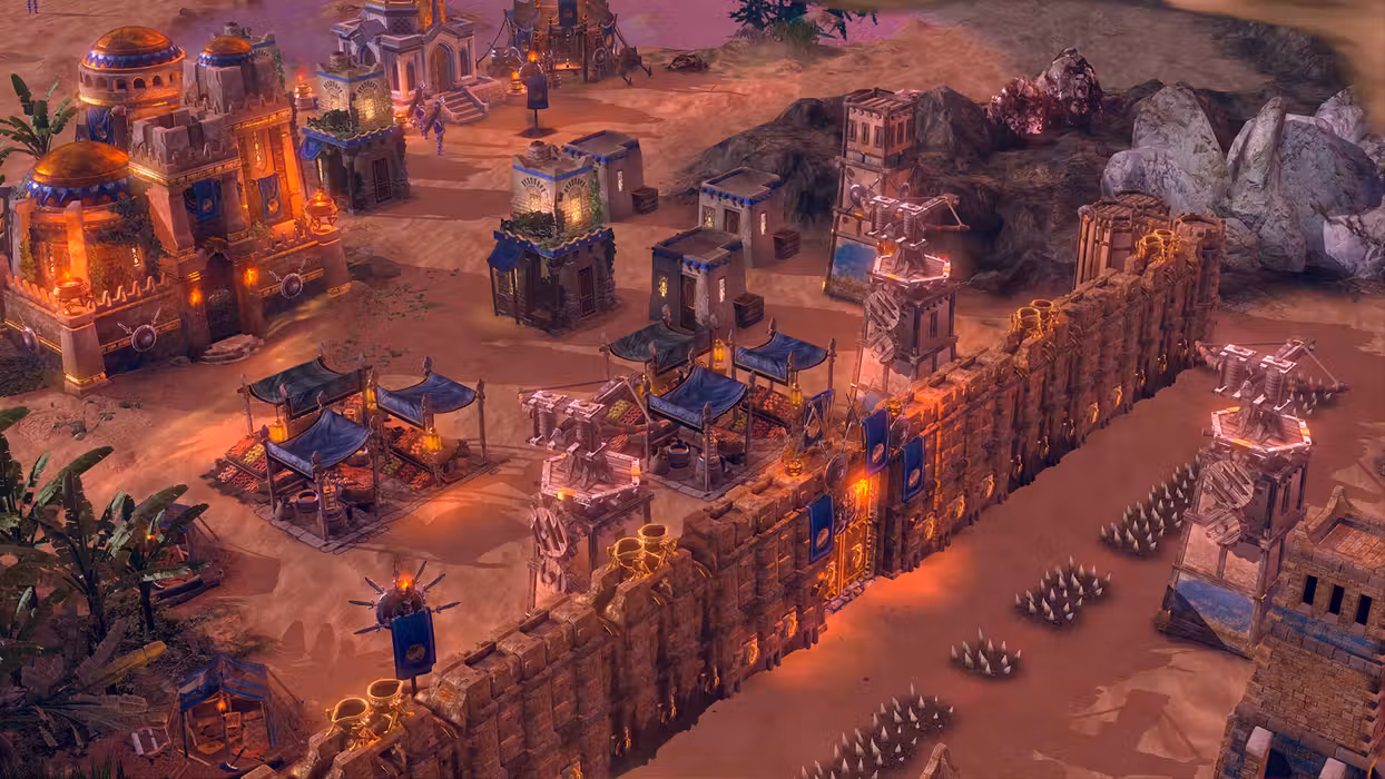 Manage resources such as food, gold, wood, and iron to fuel your expanding stronghold. Construct a variety of different buildings from housing to temples and military barracks. Build defensive walls around your stronghold and equip them with traps such as oil cauldrons to keep attackers at bay. Train units and keep them fed and paid to see their power grow.