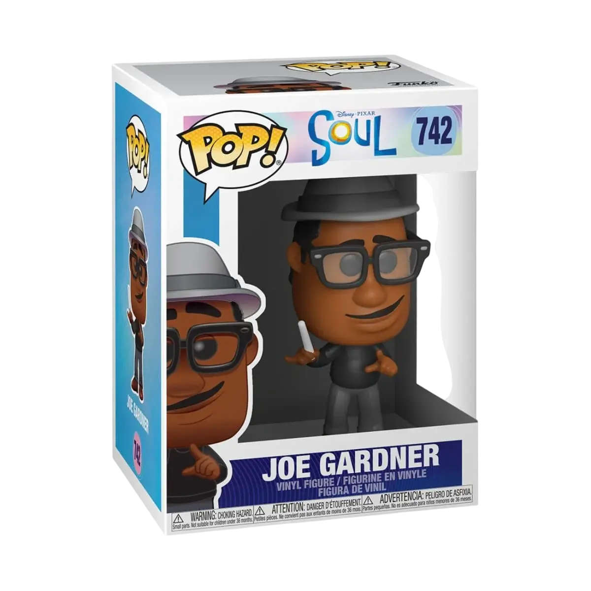 Celebrate Disney•Pixar’s Soul with Funko POP! Joe Gardner #742. The stylized vinyl figure captures Joe’s hat, glasses, and musician vibe in the classic 3.75-inch POP! scale for shelves, desks, and gift boxes.