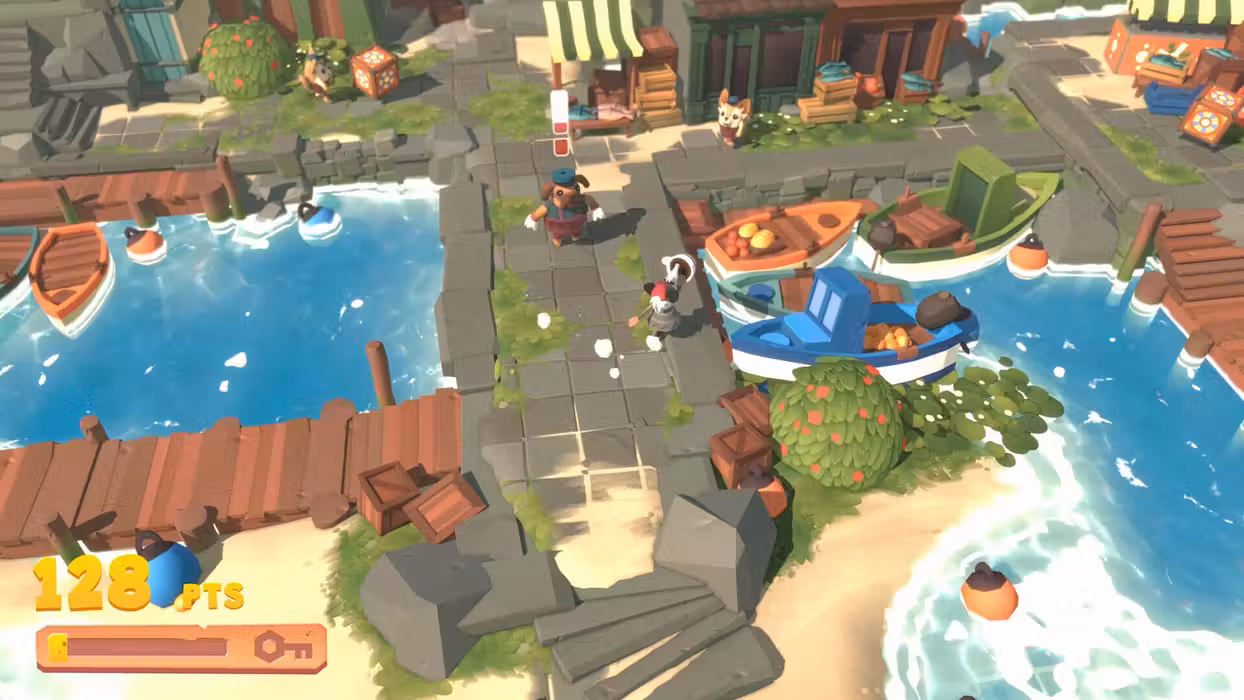 Pizza Possum is a short and sweet arcade experience where your goal is to eat as much food as you can without getting caught. An adorable mix of wholesome and mischievous, you hide and seek your way through the village alone or with a friend, using items and bushes to maneuver your way around the patrolling guard dogs. Get to the top of the village, eat the massive pizza, and steal the crown from the dog leader’s head. So what are you waiting for? Time to eat!