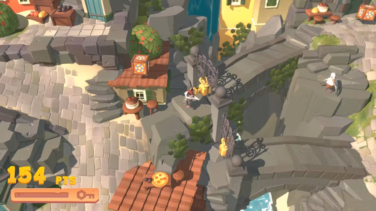Pizza Possum is a short and sweet arcade experience where your goal is to eat as much food as you can without getting caught. An adorable mix of wholesome and mischievous, you hide and seek your way through the village alone or with a friend, using items and bushes to maneuver your way around the patrolling guard dogs. Get to the top of the village, eat the massive pizza, and steal the crown from the dog leader’s head. So what are you waiting for? Time to eat!