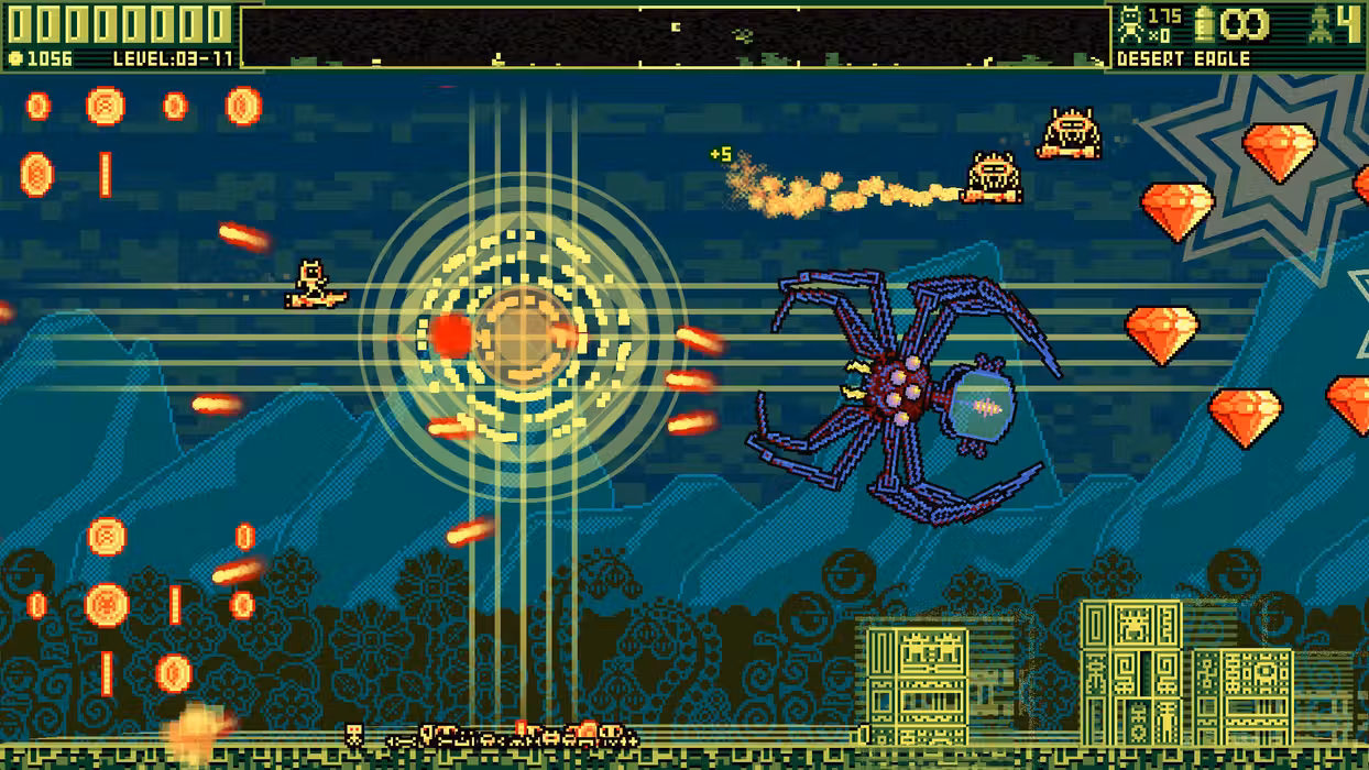 An intense, arcade-style, shooter in which you must master a vast array of ridiculous weaponry in order to defeat a race of evil aliens who are intent on abducting innocent civilians and turning them into mutants. Jetboard Joust blends the spirit and intensity of 1980s arcade coin-op SMHUPs with the replayability and tactical elements of hardcore modern roguelikes. Don't expect a story. Do expect frantic, fluid, fast-paced 60fps action, big guns, and explosions! • The Jetboard: Leap from your jetboard like a boss to gain temporary invincibility and smash your enemies to smithereens. Destroy pretty much everything in your path. You rock. • The Enemies: Over fifty different enemies to outwit. Be prepared for them to come at you with all the game's weapons plus their own special attacks. Watch out for a few tributes to classic arcade games of the past too... • The Weapons: From the conventional to the ridiculous! Jetboard Joust offers over thirty powerful weapons, each with its own distinct advantages and upgrade path, to aid you on your mission and leave a path of total destruction in your wake. Get up close and dish out massive damage with the shotgun, wreak havoc with the cluster bomb, fry enemies to a crisp with the flame tornado or shock them into submission with the lightning bolt. You'll get a different selection of weapons with each playthrough and you'll need to master them all! • The Bosses: Defeat huge bosses in a series of grueling multi-stage battles and then steal their attacks for your own use. Rendered in exquisite pixel-art detail, these guys will test your weapon-handling and evasive maneuvering to their limits. • The Planets: Choose your own path through a multitude of battlegrounds across the surface of five different planets. Discover hidden treasure, upgrades and awesome new weapons. Adapt your route based on your playstyle, the weapons you unlock and the treasure you discover. Plunder cash from fallen enemies and use it to pimp up your jetboard, jetsuit and max out your weapons for a formidable arsenal. Are you up to the challenge?