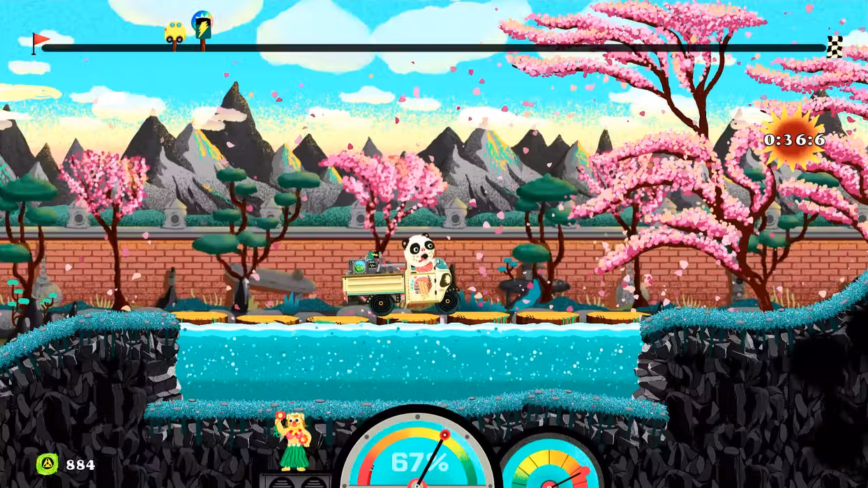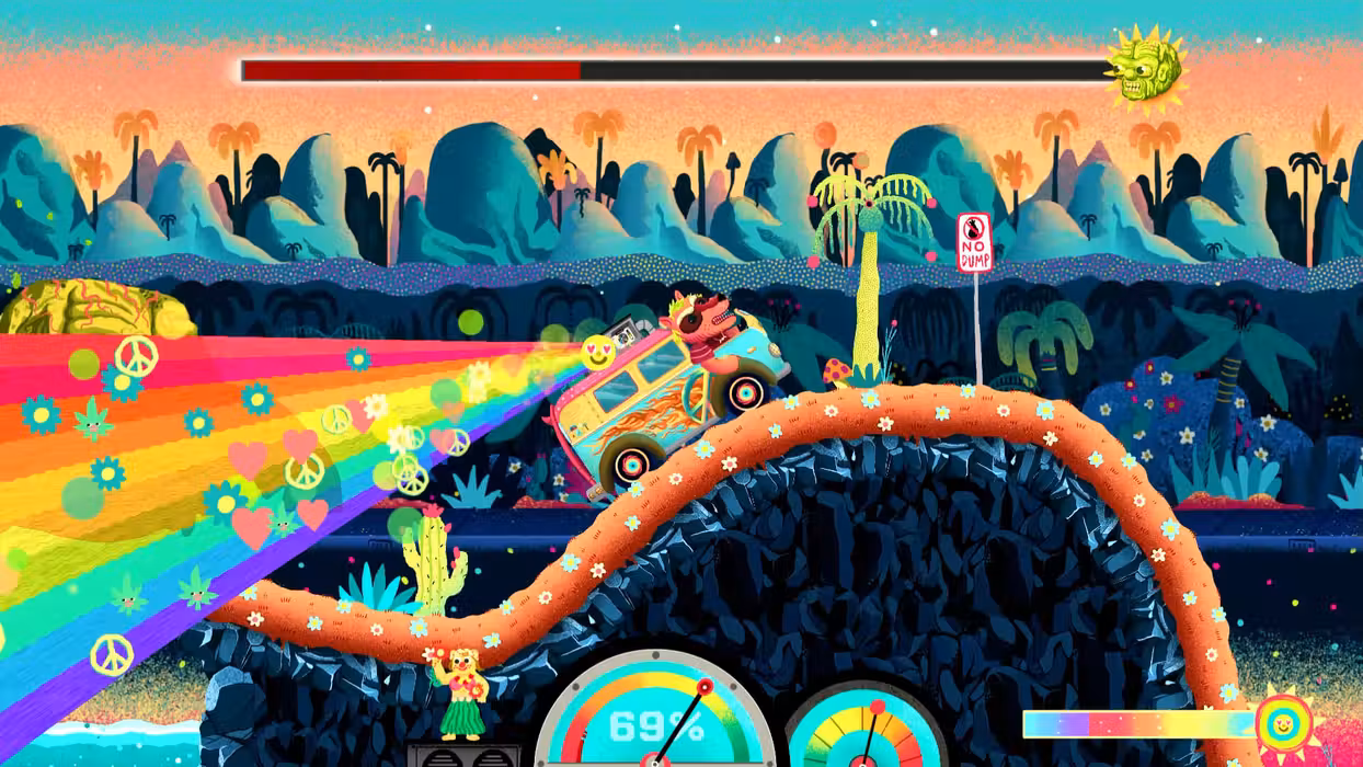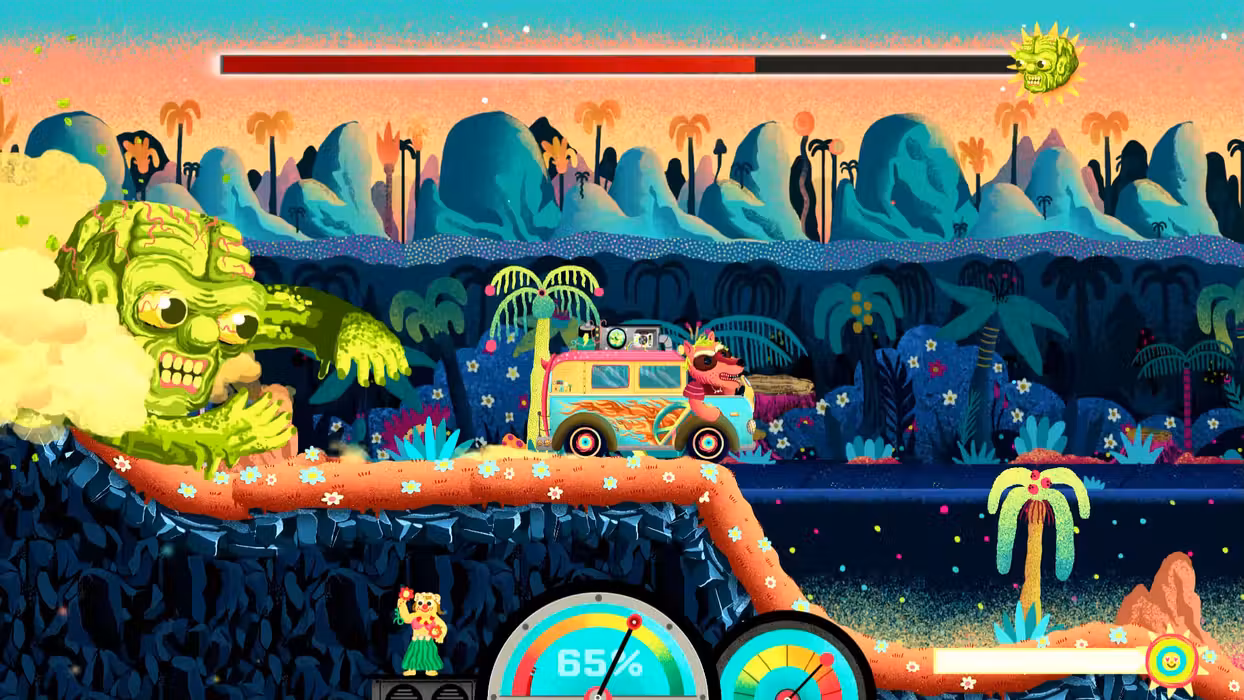 It's time to take a drive on the Furry Road! Funtasia is a side-scrolling, 2D racing game where the goal is simple: Drive as fast as possible to reach the finish line. Help save the beautiful, ecologically sustainable world of Funtasia and its furry inhabitants from certain death beneath tons of garbage dumped on it from space. Simple to pick up and play, yet challenging to truly master, Funtasia is all about timing and balance. The race track ripples, with hills, pits, bridges, quicksand, cliffs, and caves separating you from the finish line. Reaching the finish line requires balancing gas, brakes, and the car itself, just right (drivers do not enjoy meeting hard surfaces face-first at a hundred KPH, nor do doctors recommend it). Oh, and keep in mind that there's no stopping, there's only going really, really fast. Breaks are for cowards. The car's battery isn't known for its lifespan! Features • Save Funtasia, a paradise full of furry animals, from an apocalyptic wave of garbage by driving really, really fast over 10 fantastical tracks. • Master 40 different cars, with their own performance, challenges, and idiosyncrasies! • Survive boss fights with foes equal parts twisted and dastardly. • Brave the Furry Road all alone or as a duo with Cooperative or Challenge modes. • Challenge players across the world in online leaderboards to claim the top spot in going fast • Experience a fanciful art style by Italian artist Emanuele Olives drawing inspirations from Heinz Edelmenn’s work on Adventure Time, and Troma.