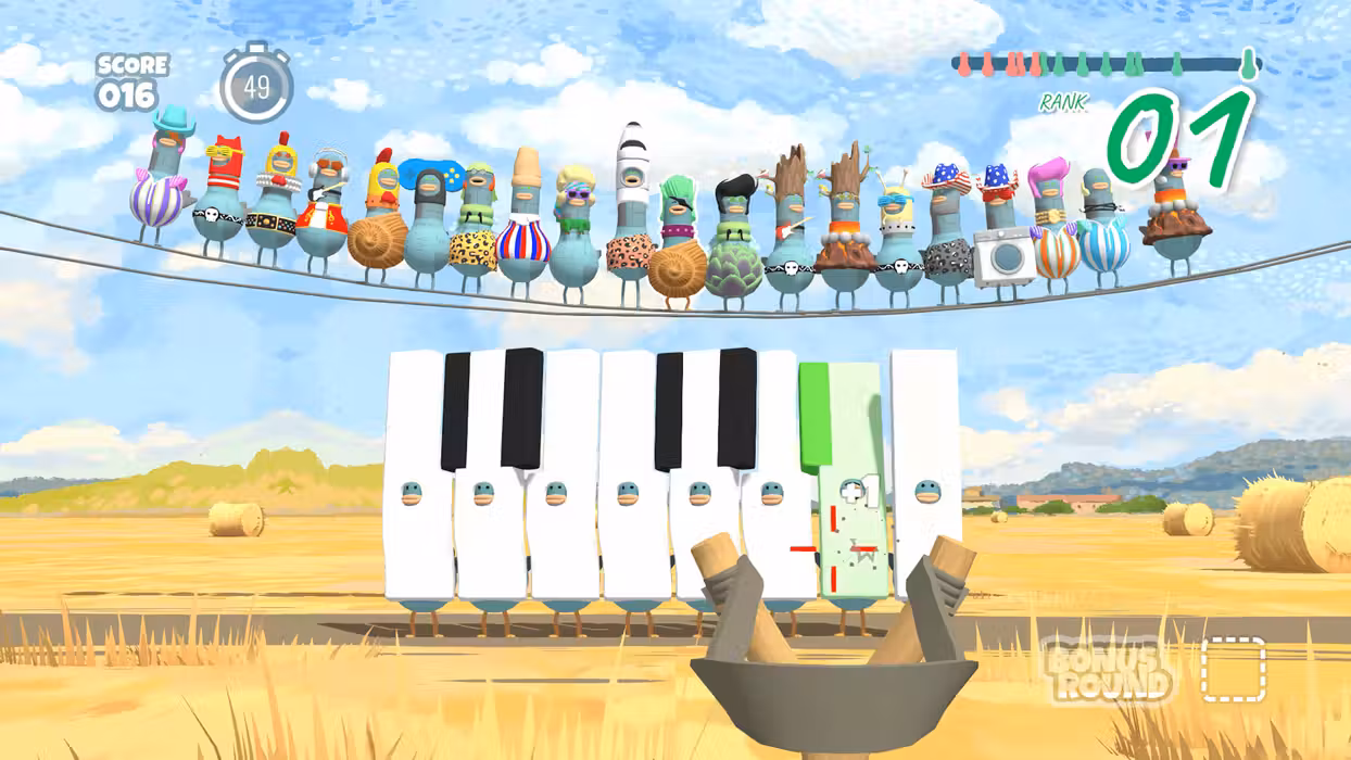 Grab your friends and battle through minigame madness through online cross platform multiplayer. With 23 minigames across 4 rounds, each Headbangers level contains a new challenge with a stimulating and unique musical twist! Each round escalates in difficulty, progressing musical frenzy until the final round– keep as cool as a coo-cumber and get that bread!