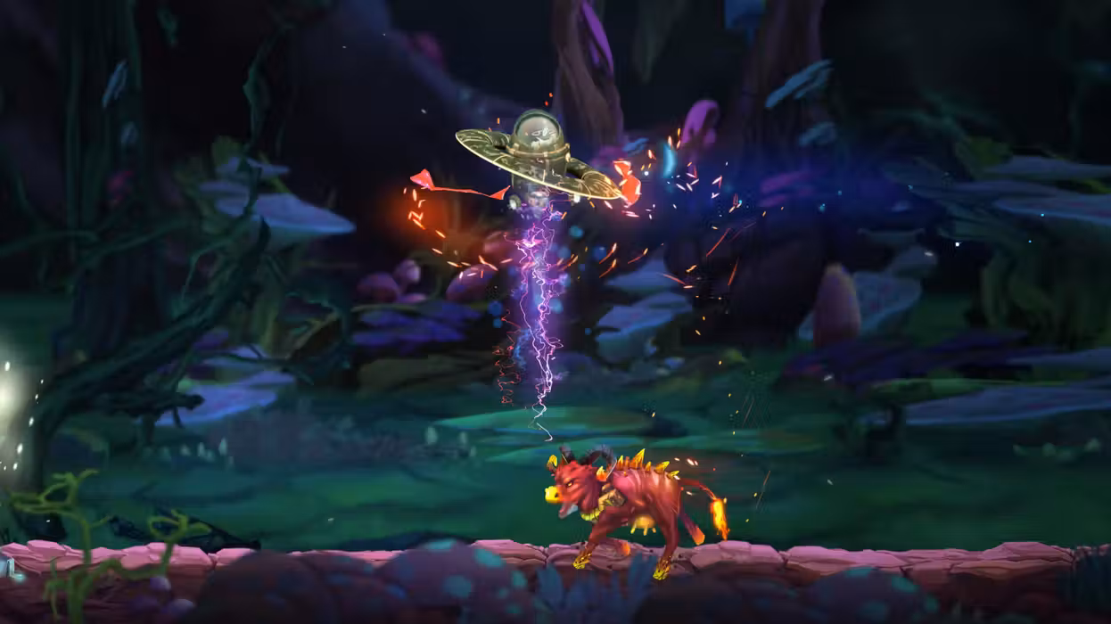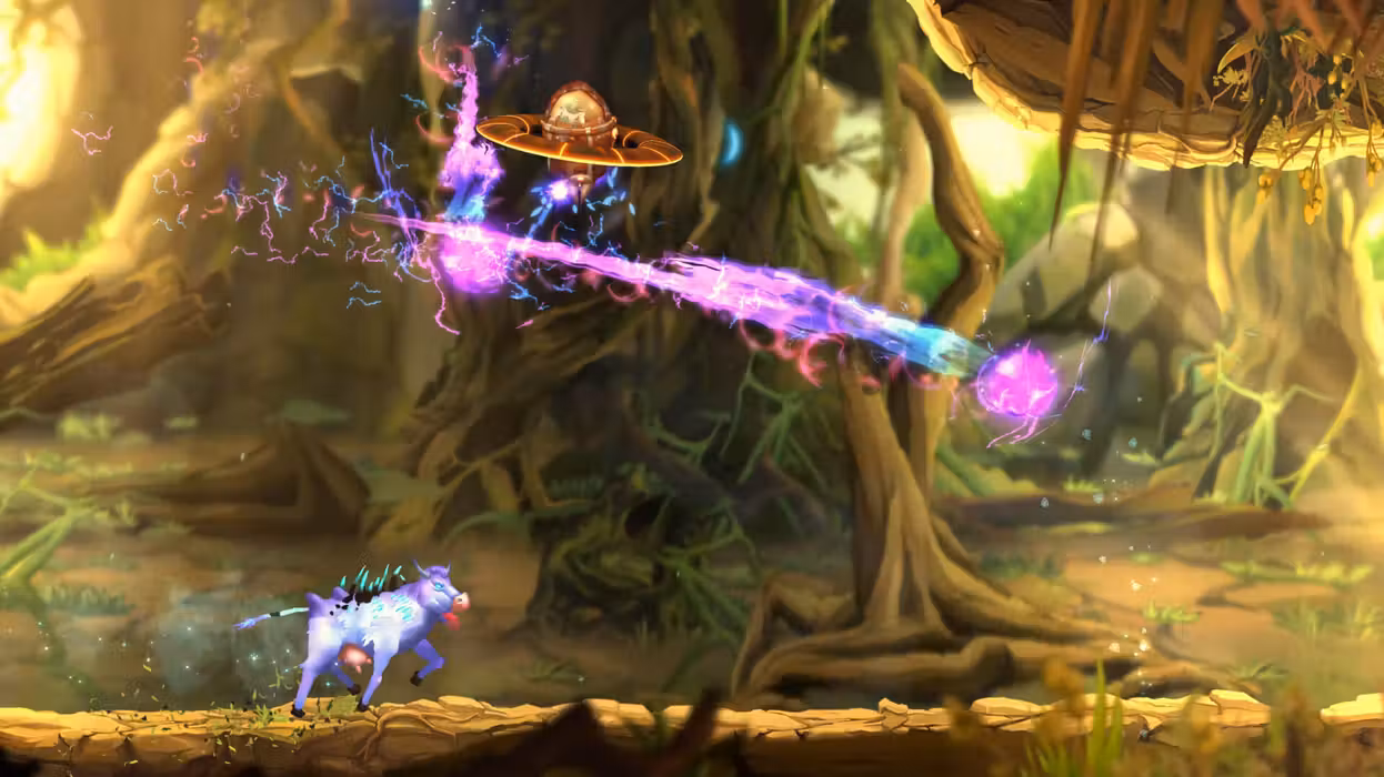 Scour the unknown in search for the source of infinite milk with your civilization’s last spaceship. Tame Mighty Cow bosses and fight hordes of enemies with your powerful milk arsenal. TAME THE MIGHTY COWS These powerful bosses will threaten your mission. You will need to master your skills against the advanced Cow AI in order to match their superior intellect! Vastly different types of enemies are waiting for you! Their mission – to prevent you from achieving yours. Each one of them requires a unique approach in order to be defeated. BE THE COW Take control of the Mighty Cows and go up against the heroes of the story. Try and protect your Milk from the Landers! Experience the game with up to 4 of your friends in various addictive couch co-op and multiplayer modes! 4 MODES Fighting with your friends against our powerful Cow AI, having brutal PvP combat, playing Galactic Mooball or teaming against waves of enemies - there is a lot to explore in the alien world of Moo Lander. Milk - the purest energy source, rivaled by the brightest hypernovas, has been lost after The War! Your mission is to recover ancient device capable of producing infinite amounts of it. Can you get to the device in time? The fate of the Landers is in your hands! ENGAGING SINGLE-PLAYER CAMPAIGN Play the emotional, 12+ hours long campaign full of memorable characters and plot twists. UPGRADE YOUR SHIP Level up your ship and unlock an arsenal of milk weaponry and defenses to shape your specific playstyle. Research camouflage modules to gain tactical advantage in combat. UNIQUE ENVIRONMENT Discover beautiful, yet lethal hand-crafted landscapes. From the highest peak to the deepest dungeon – each with its own unique challenges, enemies and puzzles. STEAM REMOTE PLAY Take advantage of Steam’s latest cool feature – Remote Play. Share your co-op games remotely with friends and let the fun know no bounds!