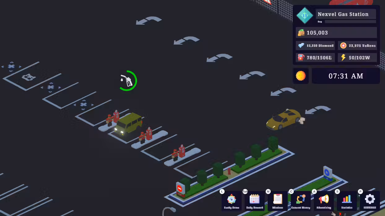 Build your gas station from scratch. Serve customers manually and earn money. When you have enough money, you can use it to improve facilities, buy new facilities or even hire staff who will help you serve customers later. But you also have to be careful, because you can also go broke!