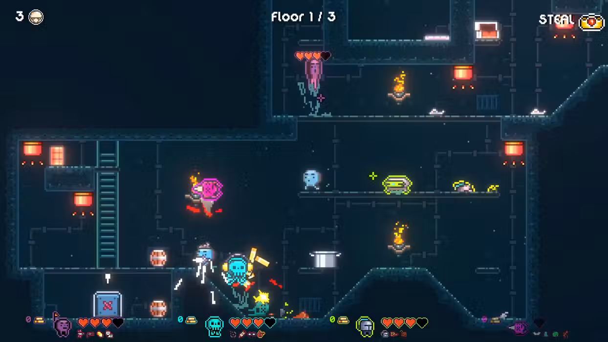 The dastardly Mr Moon and his troublemakers have stolen Mr Sun’s hatbox delivery from a humble courier company. With the fate of an aspiring apparel business at stake, it’s up to you to build a team, stage a series of heists, and get it back. Starting out as a solo delivery squad, you’ll need to build up an organization of reformed hat thieves and work together as a team or against each other to beat the odds. Whether you’re sending your unit out on covert or chaotic missions, you’ll make use of a closetful of stylish headgear and an assortment of weapons to track down and return the stolen package to its rightful owner. Modest Beginnings - Start small and gradually build a unit fit for taking down the mischievous Mr Moon and his troublemakers. Capture or Frag - Eliminate or extricate Mr Moon’s minions. Have them pay the price for their thieving crimes or recruit them for your next mission. Look the part - Discover over 50 different hats, each with unique properties. From the practical to the powerful. Even the pointless. Prep for the Heist - Take on a series of specialist missions from wave-based action to espionage before attempting a tricky Hat Heist, collecting crowns to unlock perks for your crew and moving onto the next phase of your operation. The more hands, the safer the delivery - Play solo or work together cooperatively to take on each mission in Couch Co-op (Controllers Required) or Steam Remote Play Together (™) Stand and deliver in head to head battles - Bring your swords, machine guns, and stale baguettes to the battlefield in 1v1 or Last Hat Standing PVP. (Controllers required for local play) A hat for all seasons - Dynamite Head Bands, Cardboard Boxes, Noise Cancelling Earphones and Jet Packs! There’s a style to suit every situation. Rooms to suit a certain mood - Build up a base of operations with a Brig to brainwash captives, a Lab to experiment on your staff, and a Black Market to purchase illicit contraband. Curious Quirks - Every character is different, making them individually suited (or unsuitable) for your mission, from a Butter Fingers with near-sightedness to an Animal Trainer with quick reflexes. Make sure you’re allocating your resources appropriately. Retro style with known quality - A distinct and vibrant pixel art style from Mr Kenny Sun, creator of Circa Infinity and Yankai’s Peak.