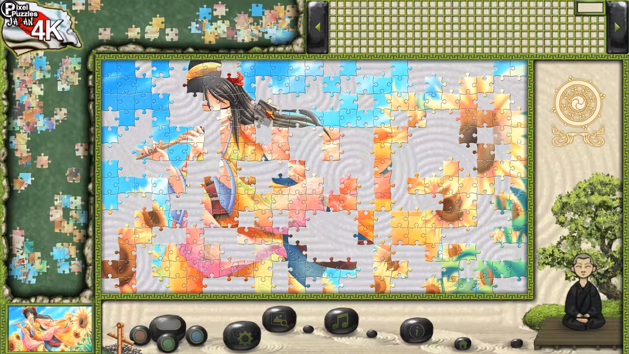 Pixel Puzzles 4k: Japan combines a traditional jigsaw puzzle style gameplay with light video-game interactivity. Build puzzles and attain a higher state of consciousness. All hand drawn in a beautiful Japanese aesthetic, Pixel Puzzles: Japan is perfect for puzzlers and gamers alike.