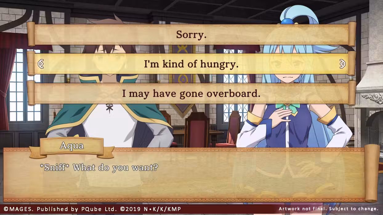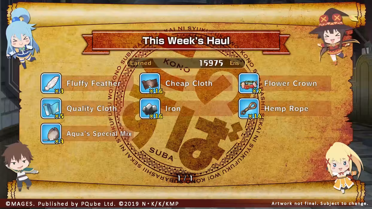 Follow Kazuma and company, as they discover a mysterious Black Slab which curses them with desires contrary to their personality. The gang must now find and feed ingredients to the slab to create outfits which match and fulfil their new desires, and thus break their curse. Are you ready to meet Darkness as a ruthless dominatrix? How about Aqua as a prim and proper goddess? Or Megumin as the proud leader of the Lolita League?