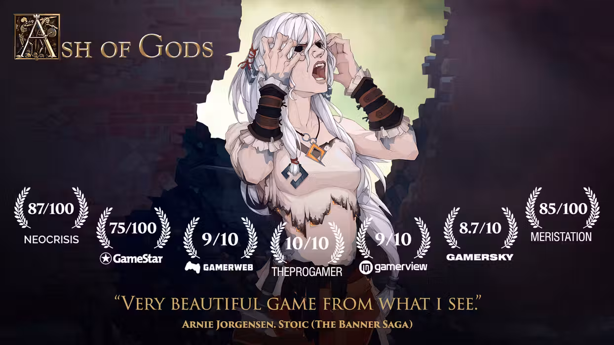 Ash of Gods: Redemption is a turn-based RPG that combines tactical combat, CCG elements, and a constantly evolving story in which no one is safe from death, including the main characters.