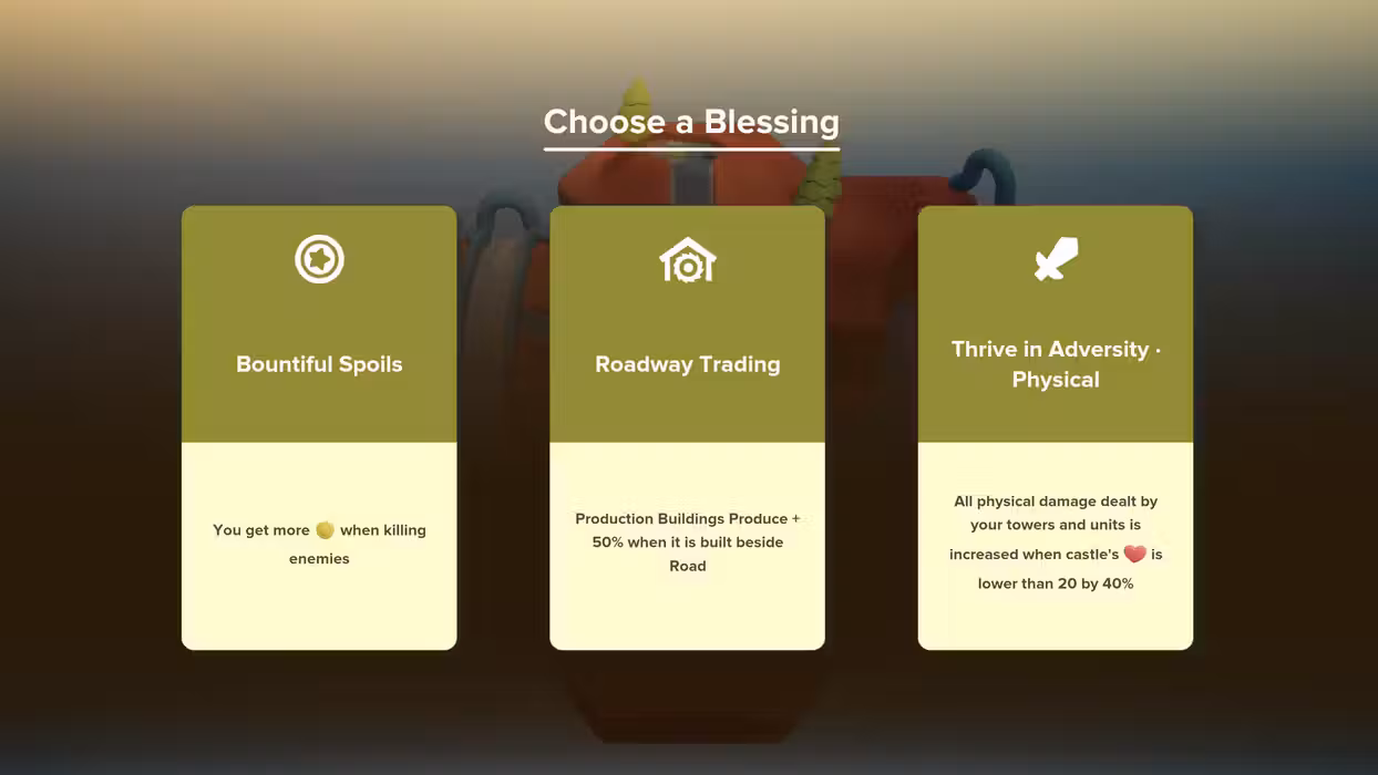 Enjoy two distinct ways to play the game, with standard and challenge modes. Standard Mode - In the standard game mode you will have access to a vast tech tree. Use points earned from previous runs to unlock new towers, units, upgrades, wonders and more. You will also unlock new maps and difficulty settings as you complete your runs. Challenge Mode - Take on a challenge that changes every week. Choose your perks, use your limited resources wisely, and compete on the weekly leaderboard. Shape your realm and control the enemy paths with randomly generated hexagonal tiles. Kill enemies to obtain hexagonal map tiles, match these titles with the existing paths to create longer routes, obtain better building placement options, or close off the loop to stop enemies spawning from the portals. Build towers, recruit armies and learn spells to defeat enemies from land, sea and air. Choose a strategy to defend your realm. Build a variety of towers from simple arrow and bomb launchers to fire and ice towers. Recruit armies of swordsmen, archers and more, and learn powerful spells to slow down and damage enemies as they invade from land, sea and air! Build magnificent wonders to turn the tides of battle Build large Wonders with unique and powerful abilities to turn the tides of battle. Build support buildings like markets and windmills to earn additional gold to purchase more firepower and upgrades. Use the environment to your advantage Use the terrain and environment to your advantage, place towers on higher elevations to increase their range in the highland maps, or control the weather to slow down or damage enemies. Defeat challenging bosses and receive blessings. Defeat bosses to unlock a wide range of blessings allowing you to earn more gold, increase the range and damage of your defenses, increase spell power and much more Survive as many days as you can to unlock new maps, buildings, units, spells and wonders. Earn stars for each day you survive, then use them to unlock new towers, units, spells, wonders, and other buffs and upgrades. Survive long enough to unlock new maps and difficulty settings.